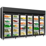 Expositor Vertical Hortifruti 6 Portas De Vidro Geas6p Gelopar Auto Serviço Hortifruti Preto 220vRefrigerador Vertical Auto Serviço Hortifruti 6 portas GEAS6P Gelopar. Conservação e Exposição de verduras, legumes, frutas, frios ou laticínios. Ideal para supermercado, hortifruti e similares. Temperatura: -2 a +10C. Refrigeração: Ar forçado com evaporador aletado. Controlador eletrônico com indicador de temperatura. Degelo: Automático. Iluminação LED (interna), com interruptor. Portas medindo: 52x147cm. Portas: Vidro duplo temperado baixo emissivo, com gás argônio. Prateleiras aramadas: 4 níveis reguláveis e inclináveis. Revestimento Interno: aço pré-pintado branco. Revestimento Externo: aço pré-pintado preto. Pés niveladores. Vidros sujeitos a condensação da umidade do ar. Porta etiquetas acompanham o produto. Acompanha kit hortifruti anteparo aramado + cesto de plástico. CAPACIDADE: 2340L. TEMPERATURA: -2° a +10°C. CONSUMO: 26,50kWh/dia. PESO: 328kg. DIMENSÕES EXTERNAS (CxAxL): 350,6x209,7x58,8cm. Equipamento certificado conforme Portaria Inmetro nº 371/2009. Expositor Refrigerador Vertical Auto Serviço Hortifruti 6 portas GEAS6P Gelopar é na Atau.Marca - GeloparModelo - GEAS5PCapacidade - 2340 LitrosFrente - 350,6cmAltura - 209,7cmProfundidade - 58,8cmTemperatura - -2° a +10°CPeso - 328kgConsumo - 26,50kWh/diaPrateleiras - 4