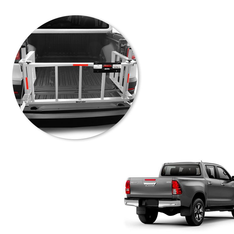 Extensor de Caçamba Hilux 2016 a 2025 Divisor Prata 200 kg EDR O Extensor de Caçamba foi desenvolvido com o objetivo de auxiliar os motorista na hora de transportar cargas na sua picape, aumentando o espaço da caçamba para transportes de mercadorias. Desenvolvido pela Gtnox, fabricante com referência nacional pela sua qualidade em fabricação de acessórios automotivos de alto padrão. Com a função de Divisor de Cargas, Rampa e Extensor Prolongador, o acessório tem como objetivo o transporte de bagagens, motos, jet ski e entre outros objetos que requerem um espaço maior na caçamba da picape. Fabricado em aço carbono na cor Prata, acompanha suporte com LEDs para a fixação de placa extra quando a tampa traseira estiver aberta, além do ótimo acabamento e design, sem detalhes de plástico. Utiliza furação original do veículo para instalação, não interferindo na originalidade de sua picape. Possui capacidade de até 200 Kg Na utilização da rampa, sendo regulamentado de acordo com a Resolução Nº 349 do contran. Especificações Técnicas: Função: Divisor, Extensor E Rampa Podem Haver Variações De 1 A 2cm Suporta Até 200 Kg Como Rampa Fixado Na Furação Original Fabricado Em Aço Carbono Suporte Para Placa Extra Produto Na Cor Prata Pintura Em EPOXI Espaço Entre Os Degrais: 18 Cm Tabela de Aplicação: Toyota Hilux 2016 Hilux 2017 Hilux 2018 Hilux 2019 Hilux 2020 Hilux 2021 Hilux 2022 Hilux 2023 Hilux 2024 Hilux 2025 Compativel com todas as versões Cabine Dupla.