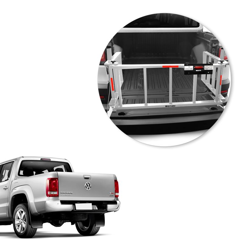 Extensor De Caçamba Amarok 2010 a 2025 Rampa 350kg Reforçado EDR O Extensor de Caçamba foi desenvolvido com o objetivo de auxiliar os motorista na hora de transportar cargas na sua picape, aumentando o espaço da caçamba para transportes de mercadorias. Desenvolvido pela Gtnox, fabricante com referência nacional pela sua qualidade em fabricação de acessórios automotivos de alto padrão. Com a função de Divisor de Cargas, Rampa e Extensor Prolongador, o acessório tem como objetivo o transporte de bagagens, motos, jet ski e entre outros objetos que requerem um espaço maior na caçamba da picape. Fabricado em aço carbono na cor Prata, acompanha suporte com LEDs para a fixação de placa extra quando a tampa traseira estiver aberta, além do ótimo acabamento e design, sem detalhes de plástico. Utiliza furação original do veículo para instalação, não interferindo na originalidade de sua picape. Possui capacidade de até 350 Kg Na utilização da rampa, sendo regulamentado de acordo com a Resolução Nº 349 do contran. Especificações Técnicas: Função: Divisor, Extensor E Rampa Podem Haver Variações De 1 A 2cm Suporta Até 350 Kg Como Rampa Fixado Na Furação Original Fabricado Em Aço Carbono Suporte Para Placa Extra Produto Na Cor Prata Pintura Em EPOXI Espaço Entre Os Degrais: 18 Cm Extensor 121 cm X 57 CM Rampa: 235 Cm Tabela de Aplicação: Volkswagen Amarok 2010 Amarok 2011 Amarok 2012 Amarok 2013 Amarok 2014 Amarok 2015 Amarok 2016 Amarok 2017 Amarok 2018 Amarok 2019 Amarok 2020 Amarok 2021 Amarok 2022 Amarok 2023 Amarok 2024 Amarok 2025 Compativel com todas as versões,exceto a versão extreme.