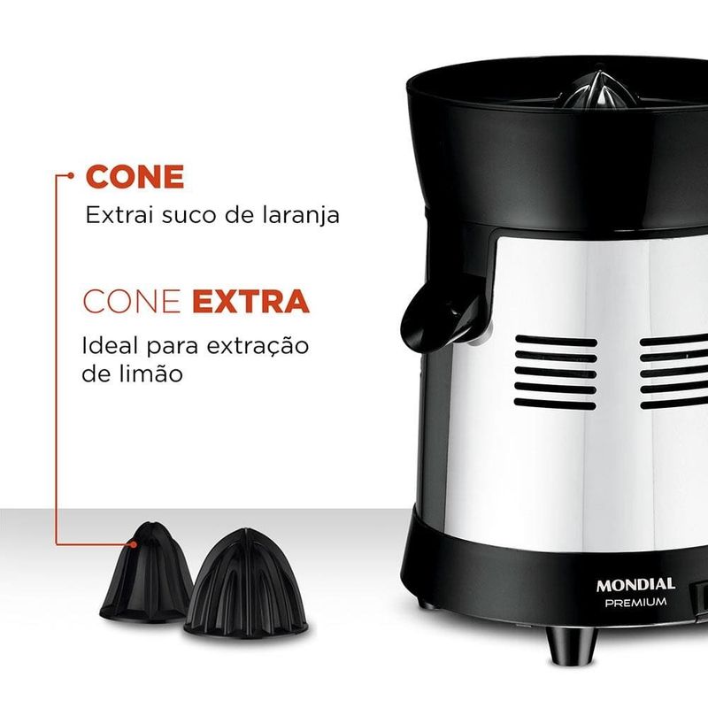 O Extrator de Frutas Mondial Turbo Premium E-10 tem 250W de potência e copo de 1 litro para você preparar com mais rapidez e eficiência seu suco natural de fruta.Ele possui duas castanhas de diferentes tamanhos para você ter o melhor “encaixe” e absorver todo o suco da fruta, seja de laranja ou limão.Simples e eficiente de usar e fácil na hora de limpar. Com ele, seu suco natural será sempre mais delicioso e refrescante!