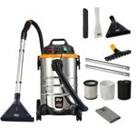 A Extratora Carpet Cleaner WAP PRO 30 é a escolha ideal para quem busca eficiência e qualidade na limpeza profissional. Com uma potência de 1600 W, este equipamento é capaz de aspirar e extrair sujeira de tapetes, carpetes, estofados e colchões com facilidade. A WAP é uma marca reconhecida por sua excelência em produtos de limpeza, garantindo que você tenha em mãos uma ferramenta confiável e duradoura.Este modelo é versátil e vem equipado com uma mangueira de 2,5 metros e duas extensões retas de alumínio, permitindo alcançar áreas de difícil acesso. Os diversos bicos inclusos, como o bico extrator grande para pisos e tapetes, o bico extrator pequeno para estofados e o bico de canto, tornam a limpeza mais eficiente e adaptável a diferentes superfícies. Além disso, a extratora possui rodízios e rodas para facilitar o transporte, bem como porta-acessórios para manter tudo organizado.A WAP Carpet Cleaner PRO 30 se destaca pelo seu sistema de filtragem de três níveis, que inclui um filtro/saco de pano, um filtro de espuma, um filtro de tela e um filtro HEPA, todos laváveis e reutilizáveis. Isso não só garante uma limpeza mais profunda, mas também devolve um ar mais puro ao ambiente. Com uma capacidade total de 30 litros e um recipiente externo de água limpa de 4,5 litros, você terá autonomia para realizar limpezas prolongadas sem interrupções.O equipamento conta com um interruptor elétrico para sucção e bomba spray, que podem ser usados separadamente ou simultaneamente, além de um gatilho de pulverização para maior praticidade. A extratora é adequada para uso em estofados, carros e ambientes profissionais, oferecendo uma solução completa para suas necessidades de limpeza.ESPECIFICAÇÕES TÉCNICAS:- Potência: 1600 W- Tensão: 220V- Frequência: 60 Hz- Motor: Universal- Capacidade total: 30 L- Capacidade do recipiente para água limpa: 4,5 L- Capacidade útil do recipiente para água suja: 22 L- Comprimento do cabo: 5 m- Comprimento da mangueira: 2,5 m- Peso líquido: 6 kg- Dimensões do produto (CxLxA): 37,5 x 43 x 65 cm- Cor: Amarelo, Preto e Inox- Níveis de filtragem: 3- Tipo de filtro: Filtro/Saco de pano lavável, Filtro espuma lavável, Filtro tela lavável, Filtro HEPA lavável- Pressão máxima de vapor: 190 barITENS INCLUSOS:- Extratora WAP CARPET CLEANER PRO 30- 2 Tubos de extensão- 2 Mangueiras de injeção- Mangueira- Bico de piso e estofamento- Bico de canto- Bico extrator pequeno- Bico extrator grande- Manual de Instruções