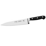 As facas da linha Century são certificadas pelo NSF (National Sanitation Foudation) organização reconhecida internacionalmente pelas práticas de consultoria, inspeção e treinamento, voltados à garantia da sanidade de alimentos, água, ar e ambiente.A Faca de 8", da Tramontina, possui lâmina fabricada com aço inox de altíssima qualidade que, aliado ao eficiente tratamento térmico sub-zero, confere uma grande resistência ao desgaste do fio.Já o cabo de policarbonato com fibra de vidro tem boa resistência a impactos.Você terá na sua casa uma peça que vai permanecer bonita e útil por muito mais tempo, e ainda pode ser lavada em máquina de lavar louças!
