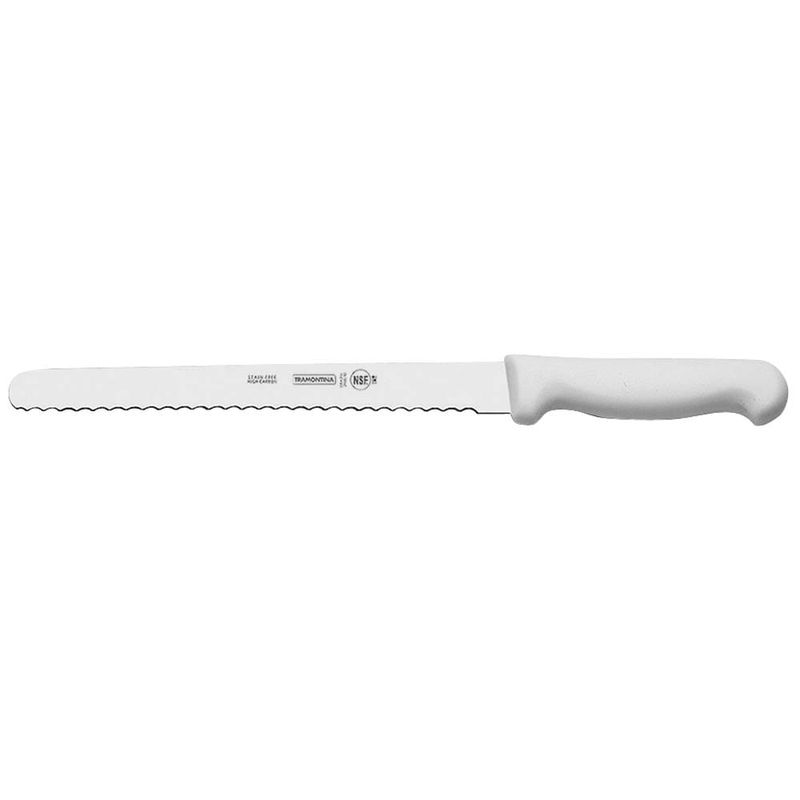 Corte com facilidade o seu pão!As facas da linha Profissional Master são certificadas pelo NSF, National Sanitation Foudation, organização reconhecida internacionalmente pelas práticas de consultoria, inspeção e treinamento, voltados à garantia da sanidade de alimentos, água, ar e ambiente.A faca para fiambre de 10", da Tramontina, possui lâmina fabricada com aço inox de altíssima qualidade que, aliado ao eficiente tratamento térmico sub-zero, confere à faca uma grande resistência ao desgaste do fio.O cabo é de polipropileno, com antibacteriano que inibe o crescimento de bactérias e fungos, você terá na sua casa uma faca que vai permanecer bonita por muito mais tempo.E ainda pode ser lavada em máquina de lavar louças!