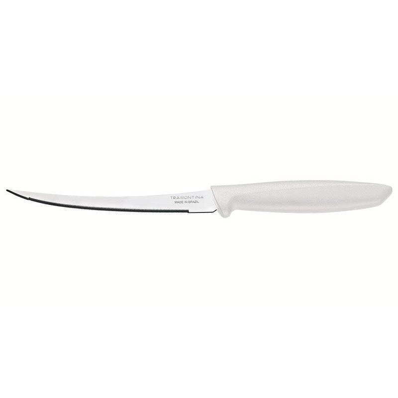 Quem ama cozinhar sabe que para o sucesso na confecção de pratos saborosos, os utensílios de cozinha precisam ser práticos, versáteis e de alta qualidade. Pensando nisso, a Tramontina desenvolveu essa incrível Faca para Tomate Plenus!Esse modelo foi especialmente desenvolvido para facilitar o corte de tomates, pois conta com lâmina microsserrilhada que rompe a pele sem amassar. Dessa forma, você poderá fazer diferentes tipos de cortes no tomate com facilidade e eficiência.A lâmina em Aço Inox é rígida e garante durabilidade do fio de corte graças ao tratamento térmico que aumenta sua resistência, garantindo cortes precisos e seguros. O cabo em Polipropileno é confortável e se encaixa perfeitamente nas mãos, além de ser leve e fácil de utilizar.Garanta agora mesmo mais praticidade para cozinhar diferentes receitas com a Tramontina!
