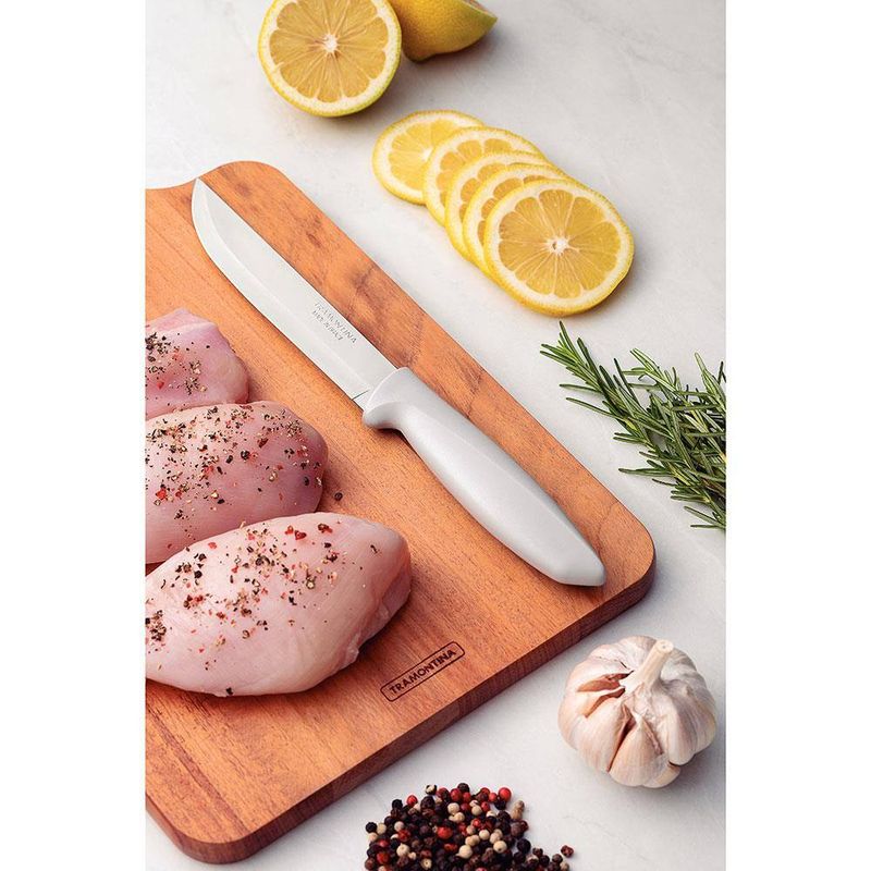 Com a incrível Faca para Cozinha Plenus da Tramontina você poderá garantir mais funcionalidade e praticidade para o preparo de suas refeições!Essa faca é essencial para diferentes funções em sua cozinha, pois conta com excelente lâmina de Aço Inox para garantir mais eficiência no corte de diferentes tipos de alimentos, desde peixe, frango, carnes bovina e suína, até legumes e verduras rígidos.A lâmina é rígida e estreita para facilitar o uso em diferentes texturas, além de ser leve e fácil de utilizar. O cabo em Polipropileno é confortável e se encaixa perfeitamente nas mãos, garantindo cortes precisos, seguros e mais eficientes.Garanta agora mesmo mais praticidade para sua cozinha com a Tramontina!