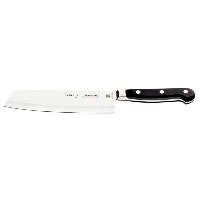 Muito mais rapidez e segurança!As facas da linha Century são certificadas pelo NSF, National Sanitation Foudation, organização reconhecida internacionalmente pelas práticas de consultoria, inspeção e treinamento, voltados à garantia da sanidade de alimentos, água, ar e ambiente.O faca para carne 7", da Tramontina, possui lâmina fabricada com aço inox de altíssima qualidade que, aliado ao eficiente tratamento térmico sub-zero, confere uma grande resistência ao desgaste do fio.Cabo de policarbonato com fibra de vidro, que tem boa resistência a impactos. Com isso, você terá na sua casa um cutelo que vai permanecer bonito por muito mais tempo.