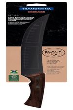 Faca para Carne Tramontina Churrasco Black com Lâmina em Aço Inox Escurecido e Cabo de Madeira 10"Com a faca para carne Tramontina Churrasco Black com lâmina em aço inox escurecido e cabo de madeira 10 polegadas ficou muito mais prático servir as melhores carnes no seu churrasco e com a garantia de um corte de alta qualidade. Produzida com lâmina de aço inox escurecido com excelente afiação, ela é ideal para cortes maiores. Sua lâmina conta com sulcos que minimiza o seu atrito com a carne. O cabo em madeira com rebites proporciona um manuseio muito mais firme e confortável, além de um estilo diferenciado. Escolha Tramontina e veja a praticidade tomar conta do seu dia a dia! Informações Gerais:Ideal para cortes grandes.Lâmina de aço inox escurecido. Resistente e robusta.Cabo de madeira com design anatômico que torna o uso muito mais confortável.Rebites aço inox escurecido. Uso Seguro e Adequado:Antes da primeira utilização, lave bem a peça e seque-a.Produto cortante e perfurante: tenha cuidado ao manusear e mantenha fora do alcance das crianças.Não utilize materiais abrasivos para limpeza e para maior durabilidade do produto recomenda-se secar bem antes de guardar. Não utilize em máquinas de lavar.Para descarte do produto e embalagem siga as orientações de reciclagem vigentes. Garantia: 90 dias para vícios ou defeitos de fabricação.