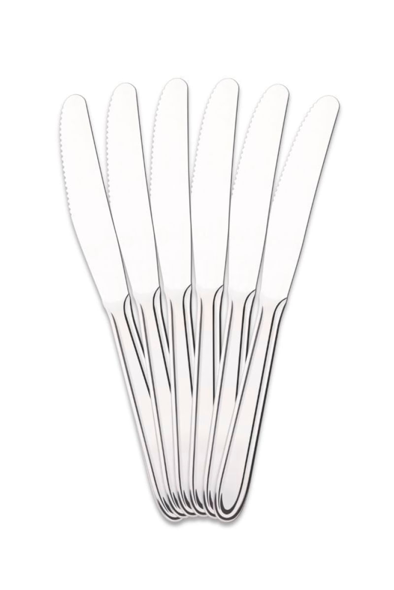 Feitos para quem busca simplicidade e qualidade, os talheres da linha Siena são ideais para o dia-a-dia. A faca de mesa é perfeita para compor a mesa no almoço ou no jantar. Fabricados em aço inox, os utensílios têm acabamento polido e detalhe no cabo. Além disso, podem ir à lava-louças. Este kit contém 12 facas.Garantia do produto: 90 dias de garantia de acordo com o Código de Defesa do Consumidor + a Garantia do Fabricante