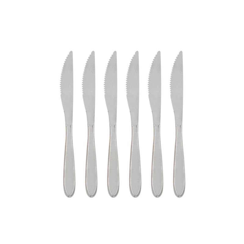 Faca Mesa Toledo 6Pc - Western HomeTransforme Suas Refeições em Momentos EspeciaisA faca de mesa Toledo 6Pc da marca Western Home é o utensílio ideal para adicionar sofisticação e elegância à sua mesa. Com lâmina de aço inoxidável AISI 420 WNR-4116, proporciona durabilidade e eficiência no corte de variados tipos de alimentos. Seu design moderno e ergonômico, aliado ao cabo em fibra de phenolkraff, garante conforto e segurança durante o manuseio.Diferenciais:Forjada em aço inoxidável de alta qualidade.Design moderno e ergonômico.Cabo em fibra de phenolkraff para maior conforto.Ideal para cortar carnes, legumes, pães e muito mais.Mais sobre o Produto:A faca de mesa Toledo 6Pc é perfeita para uso diário em casa, em ocasiões especiais, churrascos e jantares com amigos e familiares. Seu corte preciso e eficiente torna a experiência à mesa ainda mais prazerosa e refinada.Dicas de Uso:Para manter a faca sempre afiada e conservada, lave-a manualmente, seque-a imediatamente após o uso e evite o contato com superfícies abrasivas. Guarde-a em local seco e arejado.Ficha Técnica:Marca: Western HomeMaterial: Aço inoxidável AISI 420 WNR-4116Quantidade por Pacote: 6 unidadesCategoria: Utensílio de MesaCor: PrateadaTamanho: Padrão de mesaColeção: Toledo