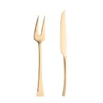 Faca e Garfo para Assado Wolff Berna Dourado de Aço InoxO Conjunto 2 Peças Faca e Garfo para Assado de Aço Inox Berna Dourado da Wolff é uma combinação perfeita de elegância e funcionalidade para suas ocasiões especiais.Design SofisticadoCom um acabamento em aço inoxidável dourado, este conjunto exala sofisticação e estilo, adicionando um toque de luxo à sua mesa.Material Durável e de Alta QualidadeFabricadas em aço inoxidável de alta qualidade, a faca e o garfo são resistentes e duráveis, garantindo precisão no corte e manuseio das carnes.Versatilidade e PraticidadePerfeito para churrascos, festas e eventos especiais, este conjunto oferece versatilidade e praticidade no preparo e na apresentação de diversas carnes assadas.Acabamento PremiumO acabamento dourado confere um visual elegante e contemporâneo, destacando-se como peças de destaque em sua coleção de utensílios de cozinha.Fácil de LimparPara manter a beleza e a durabilidade do conjunto, basta lavar à mão com água morna e detergente suave, secando imediatamente após o uso.O Conjunto 2 Peças Faca e Garfo para Assado de Aço Inox Berna Dourado da Wolff é a escolha perfeita para impressionar seus convidados com estilo e sofisticação em suas refeições.Wolff. A melhor experiência em receber, servir e decorar!Contém: 1 Faca Assado 3Mm 27,5X2,4X1,1Cm 105~110G 1 Garfo Assado 3Mm 26X3,2X3,2Cm 66GLava Louça: NãoMicroondas: NãoForno: NãoFogão: NãoFreezer: NãoMedidas Produto: Altura 3,50cm x Largura 9,00cm x Comprimento 30,00cmPeso: 0,26KgCor: DouradoMaterial: Aço InoxLavar com detergente neutro, esponja macia e secar imediatamente. Não utilizar outros produtos químicos.