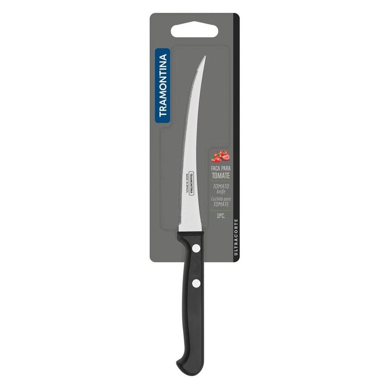 A Faca para Tomate Tramontina Ultracorte torna o dia a dia mais prático e saboroso. Criada para facilitar o corte do tomate, ela possui lâmina de aço inox microsserrilhada que rompe a pele do tomate sem amassar. É uma peça durável e muito resistente. O cabo de polipropileno na cor preta torna o uso mais confortável. É uma faca com lâmina de cinco polegadas, fácil de limpar e que pode ser lavada na máquina de lavar louças.