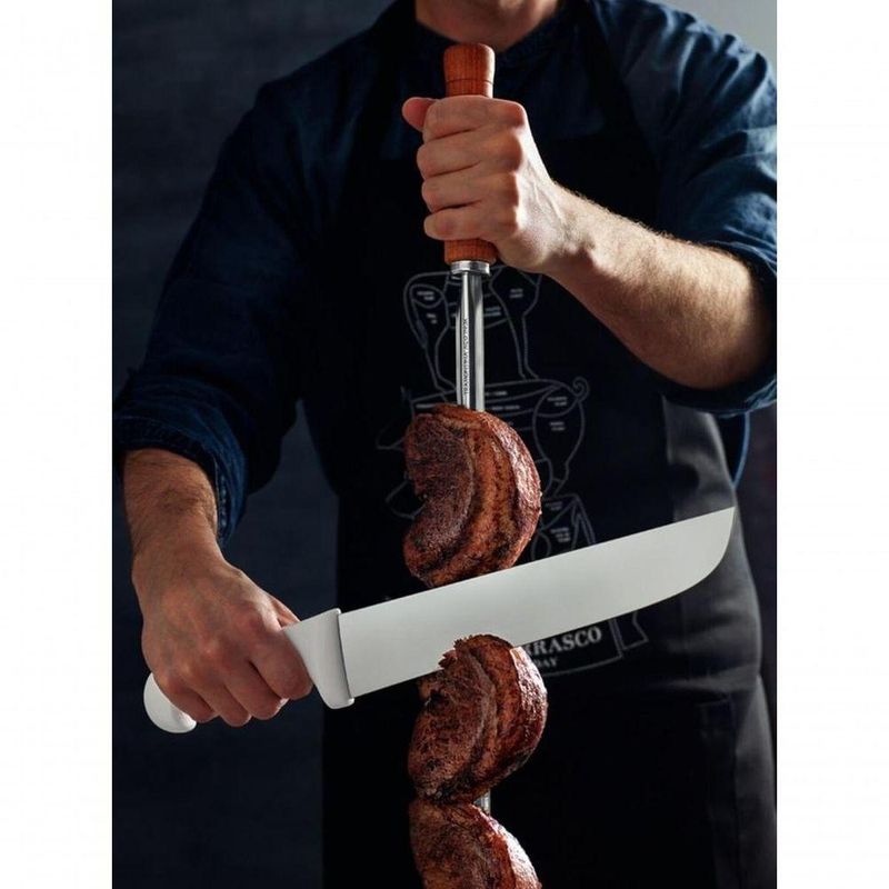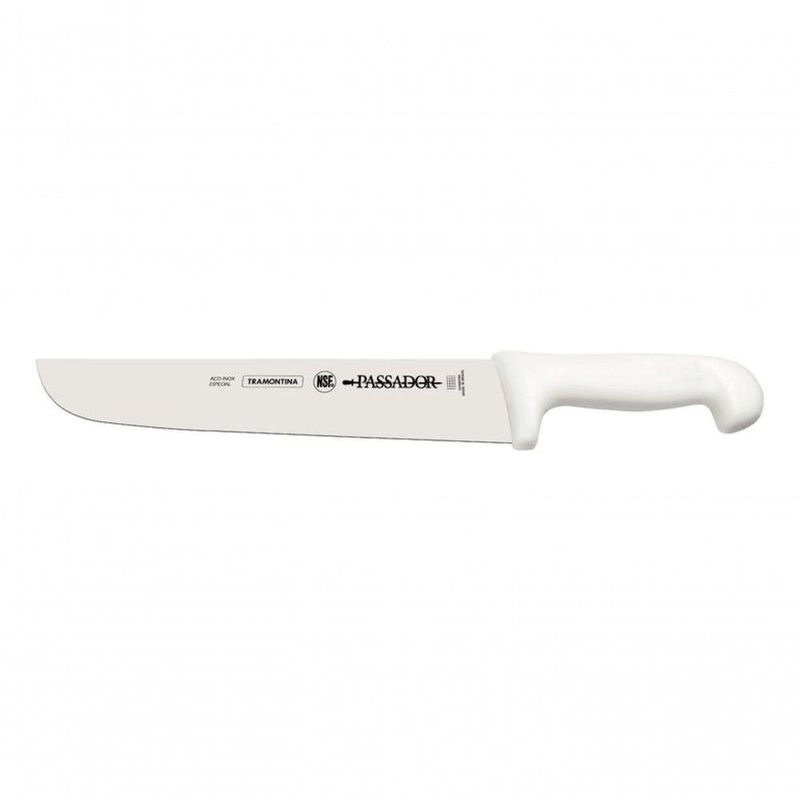 Faca Passador Tramontina Com Lâmina Em Aço Inox E Cabo Em Polipropileno Branco 12Qualidade e durabilidade paraprofissionais que trabalham muito. Com tecnologia de ponta, as facasprofissionais estão sempre preparadas para entrar em ação e fazer bonito comqualquer ingrediente, corte ou receita. Eficiência é o que não falta. LinhaProfissional Master, para os cortes e profissionais mais exigentes.Recomendações de Uso:Modo de uso: antes da primeira utilização, remova as eventuais etiquetas e lave usando apenas uma esponja macia, sabão ou detergente neutro. Outros tipos de produtos, como palha de aço, poderão riscar ou prejudicar o acabamento da peça. Enxágue cada item a fim de remover totalmente os resíduos dos produtos de limpeza, que, por serem abrasivos, podem danificar o inox. Após a lavagem enxaguar e secar bem a peça, caso contrário, as substâncias químicas da água (cloro) poderão causar manchas. Quando lavada na máquina de lavar, cuidado para que não bata umas nas outras, afim de não danificar o fio. Não guarde a peça em locais úmidos. A umidade também provoca manchas. Para maior durabilidade do produto recomenda-se secar bem antes de guardar, mesmo após lavagem em máquina. Para que as características de desempenho da faca não sejam prejudicadas, a Tramontina orienta que utilize temperaturas entre 85°C e 90°C, em tempo não superior a 25 minutos. Um tempo insuficiente resulta numa higienização inadequada da faca.- Tenha cuidado ao Manusear produtos cortantes e perfurantes e mantenha-os fora do alcance de crianças.- Foto meramente ilustrativa.Informações Adicionais:- Lâmina em aço inox especial DIN Lâmina tratada termicamente pelos processos de têmpera, sub- e revenimento, garantindo níveis de dureza média de 56 HRC, proporcionando maior desempenho no corte, fio mais preciso e durável.- Desbaste perfeito em forma de v assegura um corte preciso e um excelente rendimento, mesmo depois de muitas afiações.- Cabo de Polipropileno com proteção antimicrobiana que inibe o crescimento de bactérias e fungos.- a Tecnologia antimicrobiana é incorporada ao Cabo da Faca Durante o processo de fabricação e dura por toda a vida útil do produto.- Cabo anatômico, com textura especial, maior conforto e no manuseio, mais higiênico.- Cabo monobloco injetado diretamente sobre a espiga da Lâmina garante perfeita fixação.- Ausência total de fendas na união cabo/lâmina, evitando folgas ou frestas entre as partes e retenção de resíduos.- Desenvolvida especialmente para passadores de churrascarias.- O cabo possui um design diferenciado. A guarnição traseira é apropriada para o passador levar o espeto e a faca na mesma mão, deixando-a entre os dedos.- Pode ir à máquina de lavar louças.- Certificado pela National Sanitation Foundation (NSF), organização reconhecida como a autoridade internacional em alimentar e práticas de higiene.