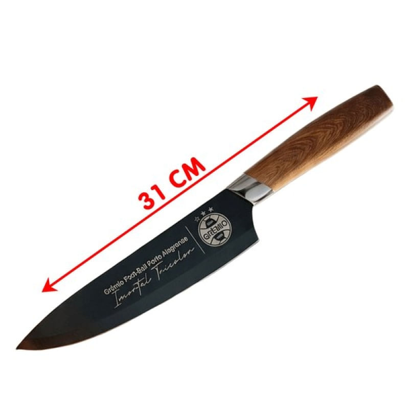 Faca Steel Premium Grêmio Foot-Ball Tricolor Imortal Oficial - Utensílio de cozinha em inox Mostre seu amor pelo Tricolor com estilo e qualidade. A Faca Steel Premium do Grêmio é personalizada com o icônico Tricolor Imortal, perfeita para torcedores exigentes que valorizam desempenho e paixão pelo clube Características: Lâmina em aço inox de alta qualidade, resistente e durável Corte preciso e excelente retenção de fio Design exclusivo Grêmio com gravação do tricolor imortal Cabo ergonômico para mais conforto e segurança Ideal para churrasco, cozinha ou coleção Embalagem: 1x Faca Steel Premium do Grêmio Personalizada Características Gerais do Produto: • Material: Aço Inox • Modelo: Faca Steel Premium • Cor: Preto • Dimensões aproximadas: 31cm x 4cm Garantia: • Garantia do site - 1 Mês