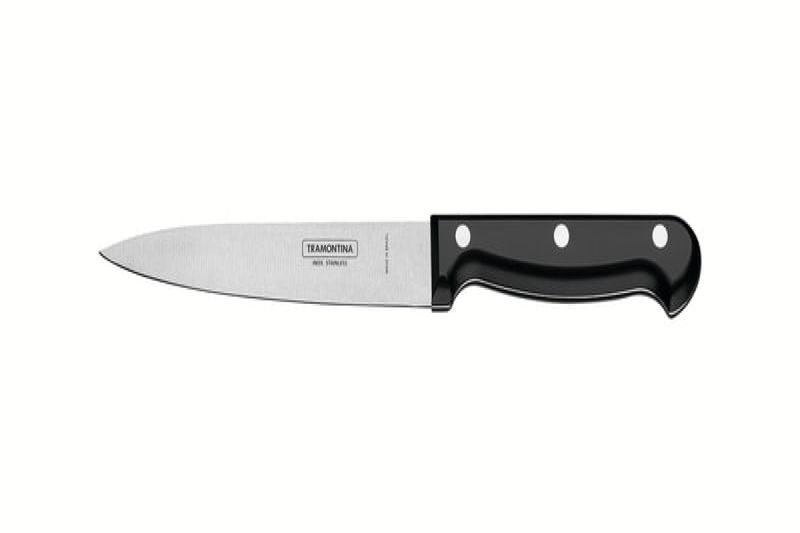 Com ponta em formato de espada, auxilia na abertura e na perfuração dos alimentos.A lâmina de aço inox têm maior durabilidade do fio devido ao tratamento térmico. O cabo de polipropileno possui maior resistência e durabilidade. E conta com proteção antimicrobiana, que inibe e reduz o crescimento de bactérias e fungos proporcionando benefícios em higiene e redução de microorganismos que causam contaminação. Esta ação dura por toda a vida útil dos produtos, mas não elimina a necessidade de limpeza.Rebites de alumínio.Pode ir à máquina de lavar louças facilitando seu dia a dia.Orientação GeralAntes da primeira utilização, lave bem a peça e seque a. Produto cortante e perfurante: tenha cuidado ao manusear e mantenha fora do alcance das crianças. Para maior durabilidade do produto recomenda se secar bem antes de guardar, mesmo após lavagem em máquina. Recomenda se o uso de tábuas de polipropileno ou madeira da Tramontina para maior durabilidade do fio da faca. Não é indicado o uso da faca para o corte de alimentos congelados. Mantenha sempre sua faca afiada utilizando os afiadores da Tramontina.Para descarte dos produtos e embalagens siga as orientações de reciclagem vigentes. Garantia do produto: 90 dias de garantia de acordo com o Código de Defesa do Consumidor + a Garantia do Fabricante