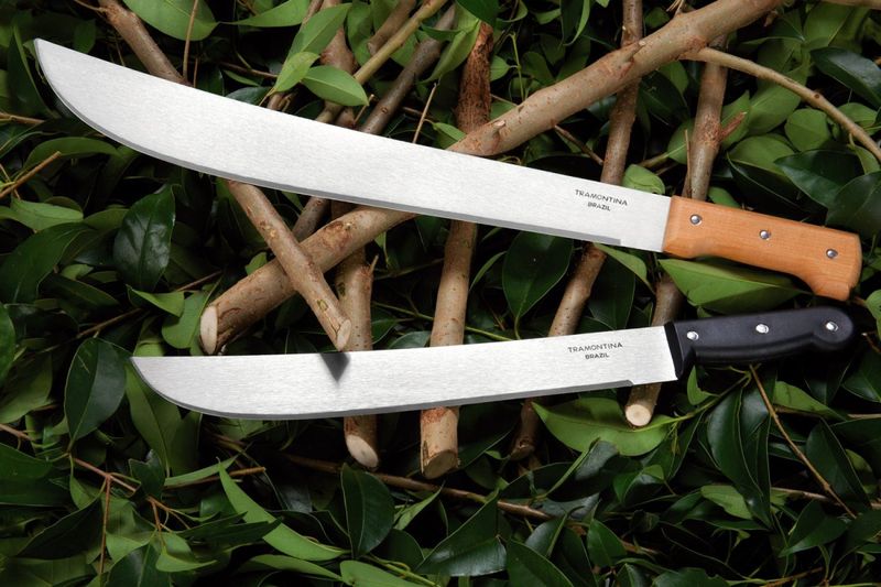 Facão para mato 12" Tramontina - Facão para mato. Orientações 1. Lâmina com maior durabilidade do fio devido ao tratamento térmico.2. A lâmina recebe um acabamento lixado com um revestimento em verniz, que lhe confere uma maior resistência.3. Cabo de polipropileno com mais resistência e durabilidade. Observações Uso seguro e adequado:Tenha cuidado ao manusear produtos cortantes e perfurantes e mantenha-os fora do alcance de crianças. Para garantir a durabilidade dos produtos, recomenda-se secá-los bem após a lavagem. Características Gerais EAN13 7891112003705 DUN14 17891112003702 NCM 8201.40.00 0,2700 kg. 0,2800 kg. Metragem 0,000515 m³. 21x 57x 430 mm. 26x 105x 607 mm. Espessura 2,0 mm. Cor 1 000000 Hexa Características Gerais do Produto: Garantia: • 1 Ano