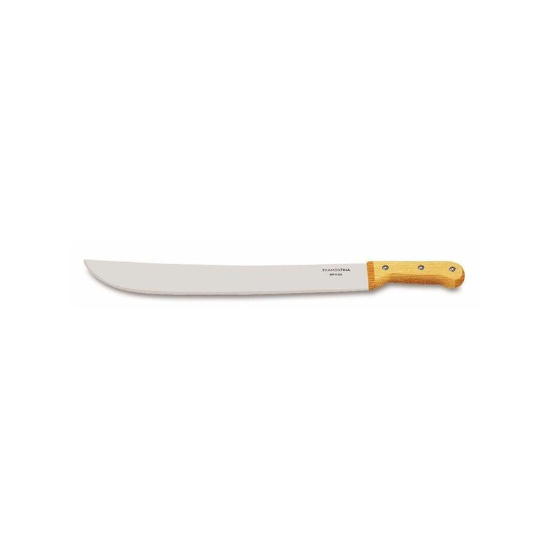 Facão para Mato Tramontina com Lâmina de Aço Carbono e Cabo em Madeira 18" Seu trabalho na hora de limpar áreas com capim ou mato e cortar galhos ficou muito mais prático de ser executado com o facão para mato Tramontina com lâmina de aço carbono e cabo em madeira 18 polegadas. Desenvolvido para levar maior facilidade para suas atividades, com ele você irá garantir resistência e poder de corte, pois ele conta com lâmina produzida em aço carbono com tratamento térmico e camada de verniz protetiva. Seu cabo é em madeira e conta com rebites de alumínio que deixam seu manuseio muito mais confortável e seguro. Escolha Tramontina e veja a praticidade tomar conta do seu trabalho! Lâmina de aço carbono com tratamento térmico especial que proporciona maior dureza, resistência do fio e maior poder de corte.Lamina com aplicação de uma camada de verniz como revestimento protetivo, a qual possui a função de proteção durante as etapas de transporte, armazenamento e primeiros usos.Cabo de madeira rebitado que garante maior segurança, ergonomia perfeita e conforto no manuseio.Rebites de alumínio.