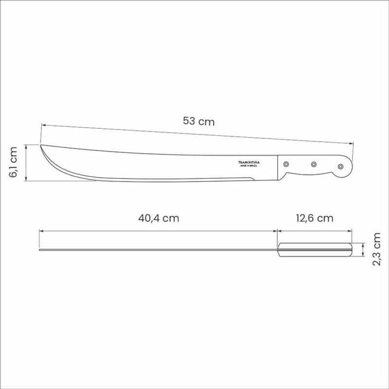 Facão Para Mato Tramontina 16" Aço Carbono Cabo PretoO facão para mato Tramontina com lâmina em aço carbono e cabo de polipropileno preto 16 polegadas é a ferramenta que irá facilitar seu trabalho e proporcionar muito mais práticidade e eficiencia. Com lâmina em aço carbono e cabo de polipropileno na cor preta, ele é resistente e durável, já que sua lâmina possui tratamento térmico e revestimento protetivo em verniz. Seu cabo é de polipropileno rebitado, tem formato ergonômico e garante maior e conforto no manuseio. Com a ; Tramontina seu trabalho será muito mais prático!Recomendações de Uso:Modo de Uso: Tenha cuidado ao manusear produtos cortantes e perfurantes e mantenha-os fora do alcance de crianças. Para garantir a durabilidade do produto, recomenda-se lavar, secar bem e aplicar uma fina camada de óleo alimentício após cada uso. Não utilize solventes e materiais abrasivos para a limpeza. Armazene em seco. Para descarte do produto e embalagem siga as orientações de reciclagem vigentes.- Foto meramente ilustrativa.Informações Adicionais:- Lâmina com espessura de 2mm;- Cabo de polipropileno rebitado que garante maior , ergonomia perfeita e conforto no manuseio;- Lâmina de aço carbono com tratamento térmico especial que proporciona maior dureza, resistência do fio e maior poder de corte;- Lamina com aplicação de uma camada de verniz como revestimento protetivo, a qual possui a função de proteção durante as etapas de , armazenamento e primeiros usos.