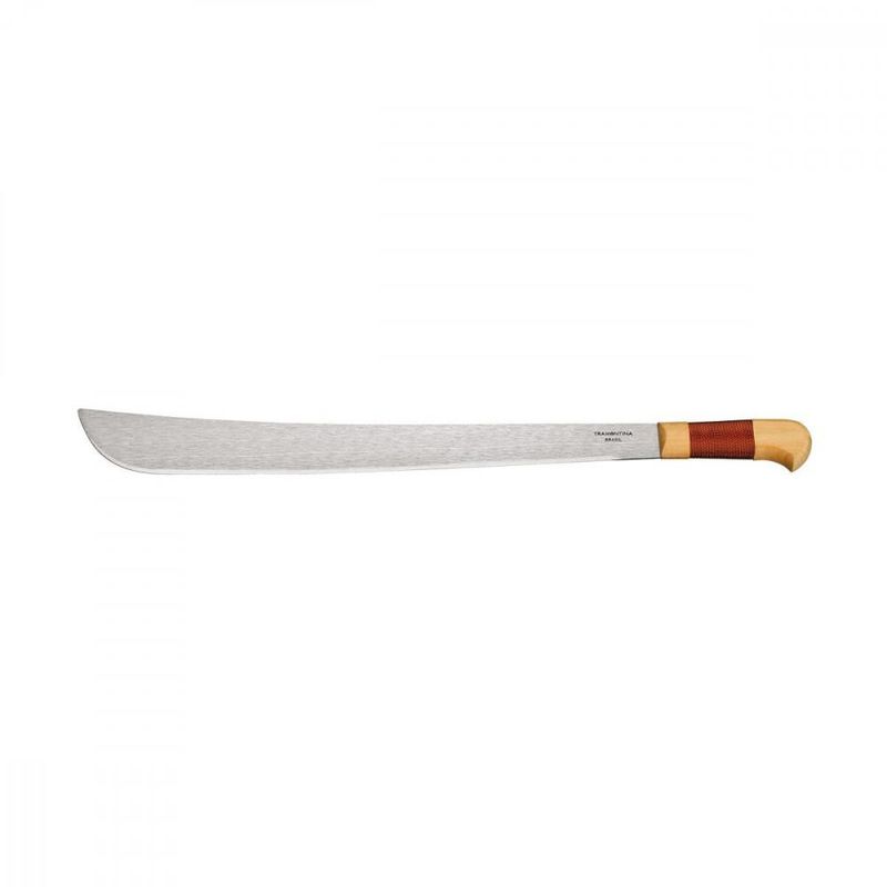 Facão para Mato Tramontina com Lâmina em Aço Carbono e Cabo de Madeira 21" O facão para mato Tramontina com lâmina de aço carbono e cabo em madeira 14 polegadas é a escolha ideal para garantir praticidade e eficiência na poda do mato e do capim. Sua lâmina é produzida em aço carbono e conta com tratamento térmico e camada de verniz protetiva, o que proporciona excelente poder de corte e maior resistência. O seu cabo tem produção em madeira e em conjunto com seu design ergonômico, garante um manuseio mais seguro e confortável. Transforme seu trabalho com a ajuda da Tramontina! Lâmina de aço carbono com tratamento térmico especial que proporciona maior dureza, resistência do fio e maior poder de corte.Lamina com aplicação de uma camada de verniz como revestimento protetivo, a qual possui a função de proteção durante as etapas de transporte, armazenamento e primeiros usos.Cabo de madeira que garante maior segurança, ergonomia perfeita e conforto no manuseio.