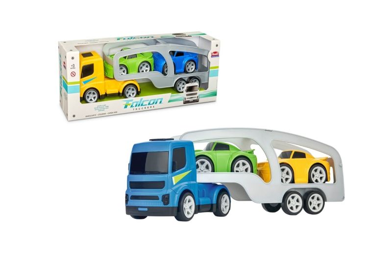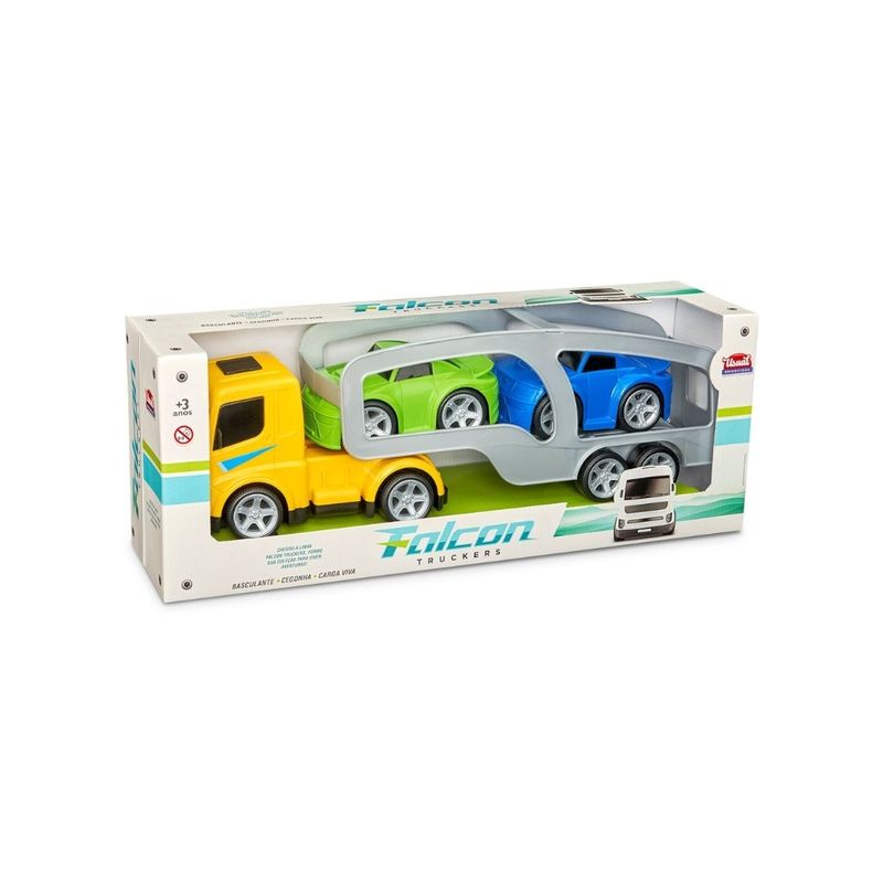 O Caminhão Cegonha é perfeito para transportar mini veículos com segurança e estilo. Ele conta com uma estrutura resistente e uma rampa móvel que facilita o embarque e desembarque dos carrinhos. Acompanha mini carrinhos para deixar a brincadeira ainda mais realista e dinâmica.REF: 761Linha: Falcon TruckersEAN13: 789830057028-5Tamanho Embalagem: L55 x A20 x C15Idade: +3 Anos