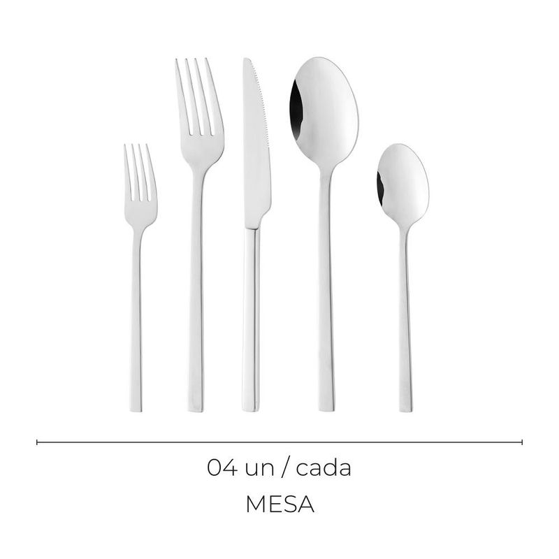 Faqueiro 20 Peças Firenze Aço Inox WolffO Faqueiro 20 Peças Firenze da Wolff é a opção ideal para quem busca elegância e praticidade em sua mesa. Com um design contemporâneo e refinado, este conjunto em aço inox é perfeito para jantares formais ou refeições casuais, garantindo que cada momento à mesa seja especial e memorável.O Faqueiro 20 Peças Firenze da Wolff é a opção ideal para quem busca elegância e praticidade em sua mesa. Com um design contemporâneo e refinado, este conjunto em aço inox é perfeito para jantares formais ou refeições casuais, garantindo que cada momento à mesa seja especial e memorável.Design sofisticadoAs linhas modernas e o acabamento polido do Faqueiro Firenze conferem um toque de classe, tornando suas refeições mais atraentes e convidativas.Durabilidade excepcionalFabricado em aço inoxidável de alta qualidade, o faqueiro resiste à corrosão e ao desgaste, assegurando que suas peças mantenham a beleza e o brilho por muito tempo.Conjunto versátilCom 20 peças, incluindo facas, garfos e colheres, este faqueiro atende às suas necessidades diárias e é perfeito para receber convidados com estilo.Modo de uso/limpezaUse o faqueiro para todas as suas refeições, desde entradas até sobremesas. Após o uso, lave com água morna e detergente neutro, utilizando uma esponja macia para preservar o acabamento. Evite produtos abrasivos que possam arranhar as peças e seque bem após a lavagem para evitar manchas.O Faqueiro 20 Peças Firenze em Aço Inox da Wolff é a escolha perfeita para quem valoriza funcionalidade e sofisticação. Com um conjunto completo que eleva sua mesa, cada refeição se torna uma experiência única e especial.Wolff - Construindo memórias e eternizando momentos.Contém: 4 Facas de Mesa4 Garfos de Mesa4 Colheres de Mesa4 Garfos de Sobremesa4 Colheres de SobremesaMedidas Produto: Altura 8,00cm x Largura 21,50cm x Comprimento 28,50cmPeso: 1,02KgLavar com detergente neutro, esponja macia e secar imediatamente.