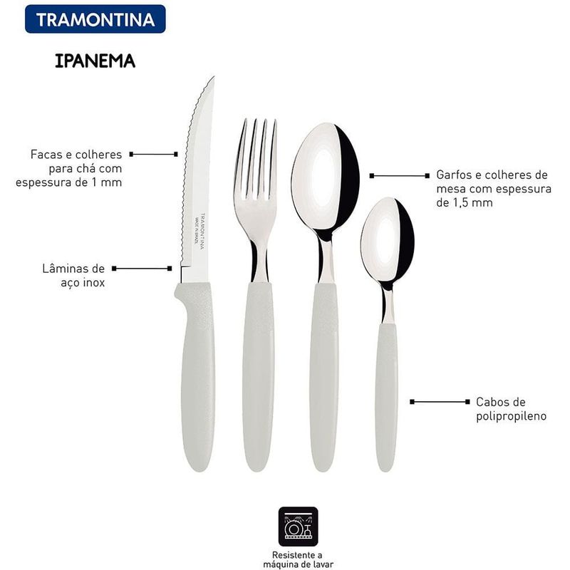 Faqueiro 24 Peças Tramontina Ipanema em Aço Inox - Branco