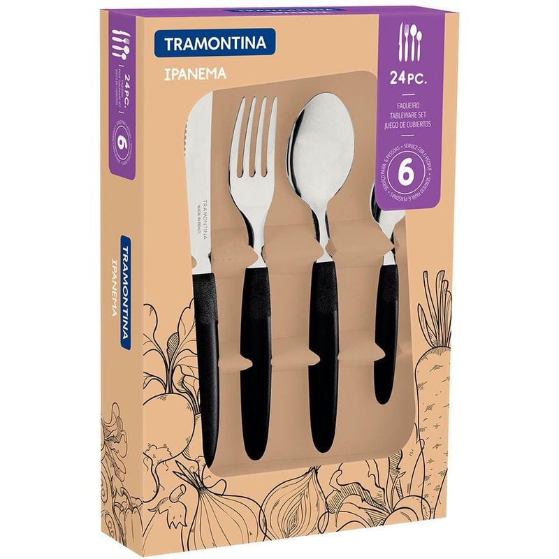 Praticidade e qualidade para suas refeições com esse incrível Faqueiro 24 Peças Ipanema da Tramontina!Com um design prático e moderno, os talheres desse conjunto são perfeitos para complementar a decoração de sua mesa! Com ele, seus almoços e jantares ficarão muito mais atraentes, atiçando o paladar e deixando qualquer receita mais saborosa!O Faqueiro Ipanema conta com a qualidade já reconhecida da Tramontina, pois as lâminas em aço inox das facas possuem maior durabilidade do fio devido ao tratamento térmico, e os garfos e colheres contam com maior espessura e uma estampagem do aço que garante maior resistência, evitando deformações. Além disso, os cabos em Polipropileno são super resistentes e possuem um desenho especialmente pensado para garantir conforto no manuseio, encaixando perfeitamente nas mãos.