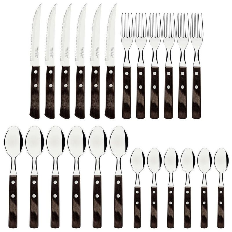 Faqueiro 24 Peças Tramontina Polywood em Aço Inox - Castanho