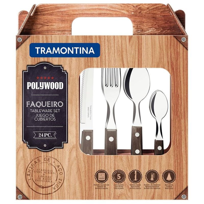 Utilidades DomésticasTalheres Jogo de TalheresFaqueiro 24 Peças Tramontina Polywood em Aço Inox - Castanho