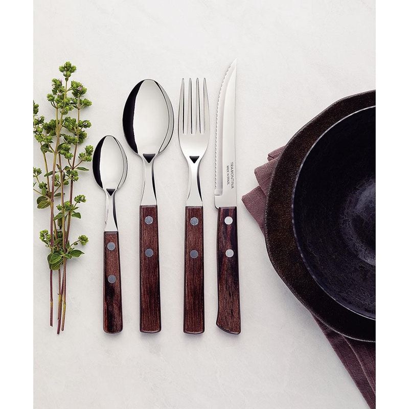 Faqueiro 24 Peças Tramontina Polywood em Aço Inox - Castanho