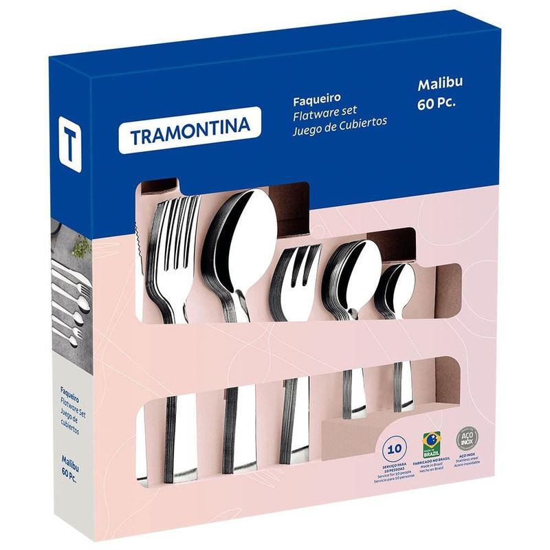Suas refeições só ficam completas com uma bela apresentação em sua mesa posta, mesmo para almoços e jantares do dia a dia. Por isso, esse incrível Faqueiro Malibu da Tramontina é perfeito para sua casa!Com esse conjunto, você garante toda a qualidade e beleza que a Tramontina pode oferecer para seu dia a dia ou para ocasiões especiais! Ele conta com peças tradicionais, como facas, garfos e colheres de mesa, mas também possui itens que irão além do básico, como garfos para torta e colheres de chá, sendo a escolha perfeita para refeições completas, da entrada até a sobremesa!As peças desse conjunto são fabricadas totalmente em Aço Inox de excelente qualidade, alto desempenho, e de melhor higiene, já que são talheres sem emendas ou fissuras que poderiam acumular resíduos.Além disso, esse faqueiro possui uma estética elegante, com design ergonômico que permite encaixe perfeito às mãos, proporcionando um uso mais confortável e prático. As lâminas das facas possuem tratamento térmico para maior precisão e durabilidade do fio de corte. Já os garfos e colheres contam com maior espessura e estampagem do aço, garantindo mais resistência e evitando deformações.Conquiste mais elegância para servir seus familiares e convidados, sem deixar de lado a praticidade com esse incrível Faqueiro Malibu da Tramontina!