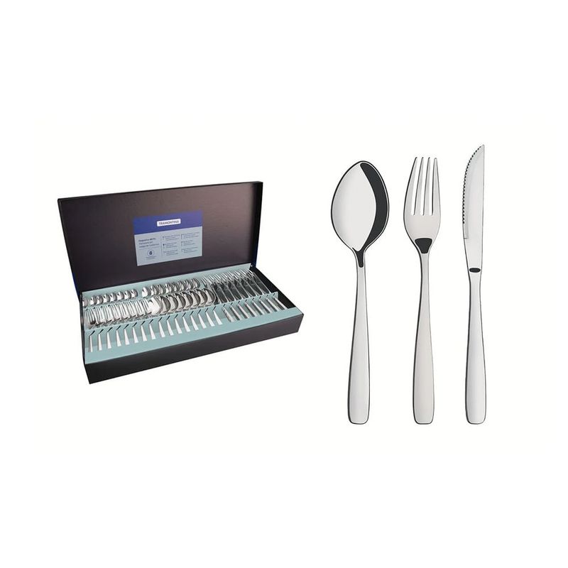 Faqueiro Aço Inox 48 Peças Amazonas - TramontinaExperiencie a sofisticação na sua mesa com o Faqueiro Tramontina Amazonas 48 PeçasO Faqueiro Aço Inox Amazonas da Tramontina é a combinação perfeita de elegância e qualidade para as suas refeições cotidianas e encontros especiais. Composto por 48 peças, incluindo facas para churrasco, colheres e garfos, este faqueiro proporciona um toque de requinte e praticidade à sua mesa.Diferenciais:Colheres com bojo simétrico e bordas arredondadasGarfos com dentes polidos e formato ideal para a bocaFacas temperadas, garantindo durabilidade e resistência à corrosãoMais sobre o Produto:Este faqueiro pode ser lavado na máquina de lavar louça, o que facilita a sua limpeza e conservação. Seu design clássico e durável faz com que seja adequado para uso diário ou em ocasiões especiais, garantindo uma experiência gastronômica mais completa.Dicas de Uso:Utilize o Faqueiro Tramontina Amazonas para compor uma mesa elegante e sofisticada em jantares, almoços em família, churrascos e confraternizações. Surpreenda seus convidados com a beleza e qualidade destes talheres de aço inox.Ficha Técnica:Marca: TramontinaMaterial: Aço InoxQuantidade de Peças: 48Inclui: Facas para churrasco, colheres e garfosAcabamento: BrilhoAdequado para 8 pessoasPode ser lavado na máquina de lavar louça