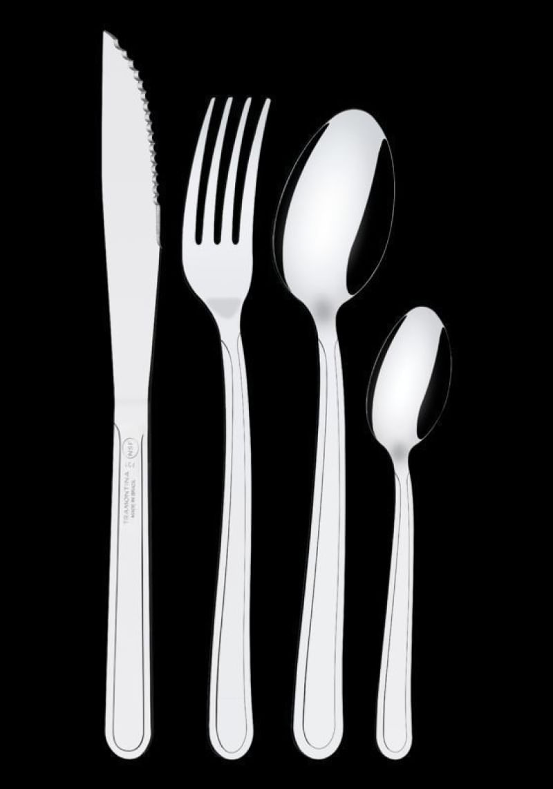 Faqueiro Tramontina Búzios em Aço Inox com Detalhe 24 Peças Encante seus amigos e familiares com o Faqueiro Tramontina Búzios em Aço Inox com Detalhe 24 Peças! Produzido totalmente em aço inox, o faqueiro além de ser resistente e durável, deixa a composição da sua mesa ainda mais especial, pois as peças que compõem o jogo possuem um lindo acabamento, garantindo um charme a mais para a refeição. As peças ainda são fáceis de limpar e podem ser lavadas na máquina de lavar louças. A escolha perfeita para saborear as melhores receitas! Informações Gerais: Os talheres são produzidos em aço inox que mantém a beleza, a higiene e a durabilidade. As lâminas das facas têm maior durabilidade do fio devido ao tratamento térmico. Os garfos e colheres garantem maior resistência devido a espessura do aço e a estampagem das lâminas. Podem ir à máquina de lavar louças facilitando seu dia a dia. Uso seguro e adequado: Antes da primeira utilização, lave bem as peças e seque-as. Tenha cuidado ao manusear produtos cortantes e perfurantes e mantenha-os fora do alcance de crianças. Para maior durabilidade dos produtos, recomenda-se secar bem antes de guardar, mesmo após lavagem em máquina.Para descarte dos produtos e embalagens siga as orientações de reciclagem vigentes. Garantia: 90 dias de garantia legal para vícios ou defeitos de fabricação.