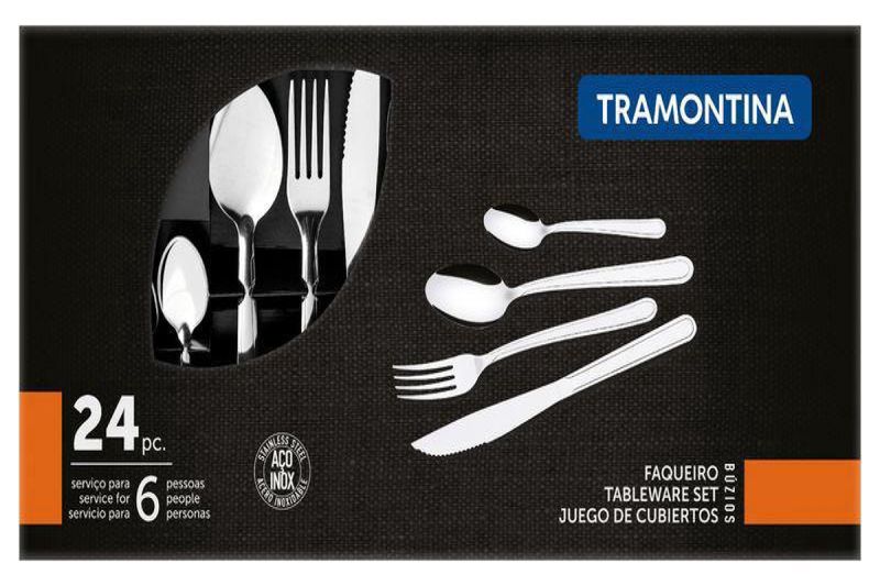 Faqueiro Tramontina Búzios em Aço Inox com Detalhe 24 Peças Encante seus amigos e familiares com o Faqueiro Tramontina Búzios em Aço Inox com Detalhe 24 Peças! Produzido totalmente em aço inox, o faqueiro além de ser resistente e durável, deixa a composição da sua mesa ainda mais especial, pois as peças que compõem o jogo possuem um lindo acabamento, garantindo um charme a mais para a refeição. As peças ainda são fáceis de limpar e podem ser lavadas na máquina de lavar louças. A escolha perfeita para saborear as melhores receitas! Informações Gerais: Os talheres são produzidos em aço inox que mantém a beleza, a higiene e a durabilidade. As lâminas das facas têm maior durabilidade do fio devido ao tratamento térmico. Os garfos e colheres garantem maior resistência devido a espessura do aço e a estampagem das lâminas. Podem ir à máquina de lavar louças facilitando seu dia a dia. Uso seguro e adequado: Antes da primeira utilização, lave bem as peças e seque-as. Tenha cuidado ao manusear produtos cortantes e perfurantes e mantenha-os fora do alcance de crianças. Para maior durabilidade dos produtos, recomenda-se secar bem antes de guardar, mesmo após lavagem em máquina.Para descarte dos produtos e embalagens siga as orientações de reciclagem vigentes. Garantia: 90 dias de garantia legal para vícios ou defeitos de fabricação.