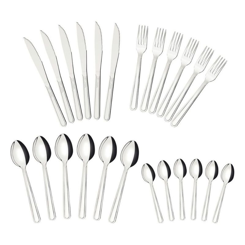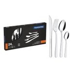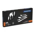 Encante seus amigos e familiares com o Faqueiro Tramontina Búzios em Aço Inox com Detalhe 24 Peças! Produzido totalmente em aço inox, o faqueiro além de ser resistente e durável, deixa a composição da sua mesa ainda mais especial, pois as peças que compõem o jogo possuem um lindo acabamento, garantindo um charme a mais para a refeição. As peças ainda são fáceis de limpar e podem ser lavadas na máquina de lavar louças. A escolha perfeita para saborear as melhores receitas!Informações e Recomendações de Uso:Os talheres são produzidos em aço inox que mantém a beleza, a higiene e a durabilidade.As lâminas das facas têm maior durabilidade do fio devido ao tratamento térmico.Os garfos e colheres garantem maior resistência devido a espessura do aço e a estampagem das lâminas.Podem ir à máquina de lavar louças facilitando seu dia a dia.Antes da primeira utilização, lave bem as peças e seque-as.Tenha cuidado ao manusear produtos cortantes e perfurantes e mantenha-os fora do alcance de crianças.Para maior durabilidade dos produtos, recomenda-se secar bem antes de guardar, mesmo após lavagem em máquina.Conteúdo da Embalagem:6 Facas para Churrasco 4”, 6 Garfos de Mesa, 6 Colheres de Mesa, 6 Colheres para chá.Medidas da Embalagem: 4x20.7x45.2cmPeso da Embalagem: 770gGarantia do produto: 90 dias de garantia de acordo com o Código de Defesa do Consumidor + a Garantia do Fabricante