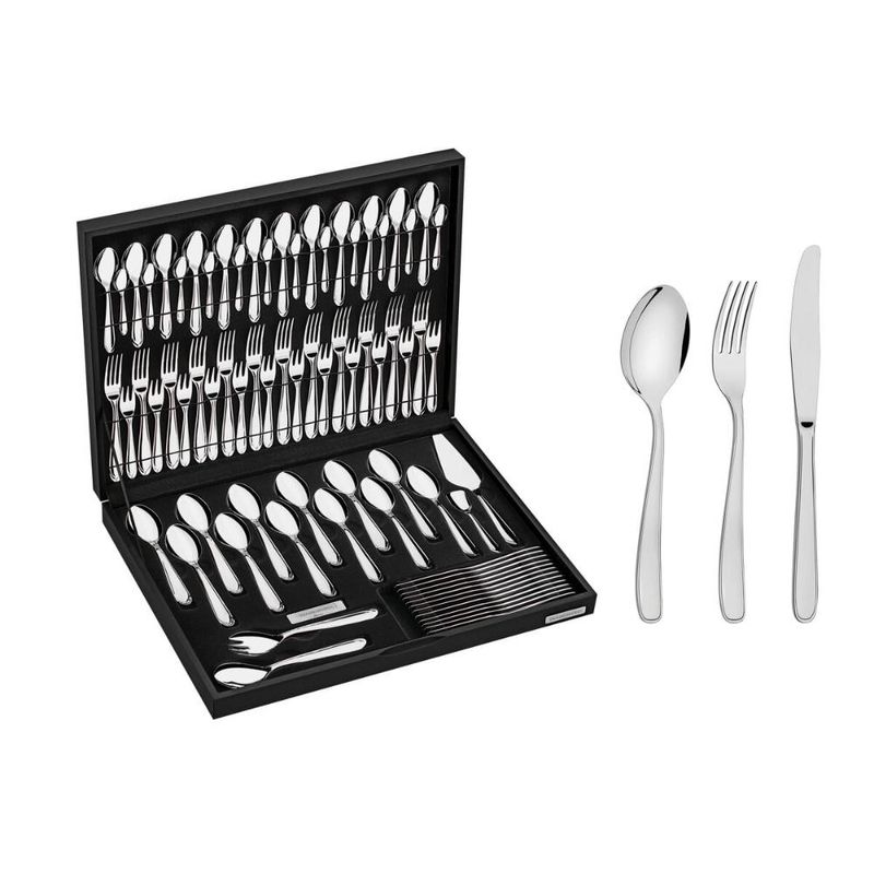 Faqueiro Tramontina Maresias 76 Peças com Estojo de MadeiraTransforme suas refeições em momentos especiais com o Faqueiro Tramontina Maresias. Um conjunto sofisticado de 76 peças em aço inox com acabamento em brilho, que une elegância, durabilidade e praticidade para sua mesa.Principais DiferenciaisDesign sofisticado: acabamento em brilho que valoriza a apresentação dos pratos.Qualidade superior: peças produzidas totalmente em aço inox, resistentes à corrosão e altamente duráveis.Conforto no uso:Colheres com bojo simétrico e bordas arredondadas.Garfos com dentes polidos e formato ideal para maior conforto.Facas totalmente temperadas, com fio duradouro e que não riscam porcelanas.Praticidade no dia a dia: pode ser lavado na máquina de lavar louças sem perder o brilho.Apresentação impecável: acompanha um elegante estojo em madeira MDF, perfeito para armazenar e impressionar em ocasiões especiais.Cuidados de ConservaçãoLave com sabão neutro ou detergente e esponja macia.Evite palha de aço e produtos abrasivos.Enxágue bem e seque imediatamente para preservar o brilho.Prefira água quente para renovar o inox.Não exponha os talheres a superfícies quentes ou locais úmidos.Ao usar lava-louças, retire e seque manualmente após o ciclo de enxágue.