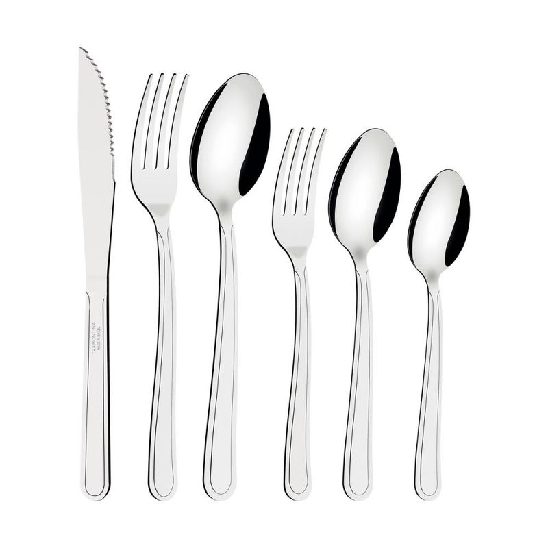 Faqueiro Tramontina Aço Inox Buzios 36 Peças A mesa para suas refeições, seja do dia a dia ou de um evento formal, merece uma composição especial. E para estes momentos, conte com o faqueiro Tramontina Búzios em aço inox 36 peças! Perfeito para quem busca talheres clássicos que combinam beleza e durabilidade, ele possui peças para todas as refeições e que vão transformar seus encontros em momentos cada vez mais memoráveis. Todos os talheres são produzidos em aço inox, o que garante maior resistência, higiene e a durabilidade. As lâminas das facas possuem fio de excelente qualidade devido ao tratamento térmico, enquanto os garfos e colheres oferecem resistência superior graças à espessura do aço e à estampagem das lâminas. Além de todas essas características incríveis, as peças do faqueiro Tramontina Búzios são fáceis de limpar e podem ir à máquina de lavar louças e vão otimizar seu dia a dia na cozinha. Com a Tramontina, você transforma cada momento à mesa em uma ocasião especial! Descrição do produtoMarca: TramontinaMaterial: Aço InoxLinha comercial: BúziosServiço: 6 pessoasComposição / Quantidade: 36 PeçasMáquina de Lavar Louça: Sim Conteúdo6 Colheres de Mesa Búzios6 Colheres para Chá Búzios6 Colheres para Sobremesa Búzios6 Facas para Churrasco 4" Búzios6 Garfos de Mesa Búzios6 Garfos para Sobremesa Búzios Imagens meramente ilustrativas, todos os itens que ambientam o produto não estão inclusos.