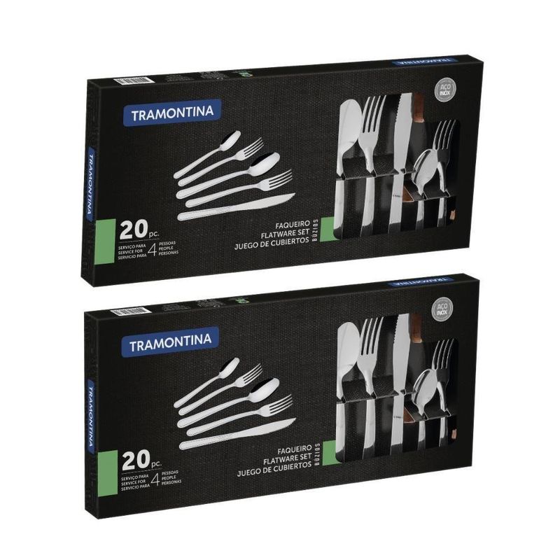 Faqueiro Tramontina Aço Inox Buzios 40 PeçasFaqueiro Tramontina Aço Inox Buzios 40 PeçasEncante seus amigos e familiares com o Faqueiro Tramontina Búzios em Aço Inox com Detalhe 40 Peças! Produzido totalmente em aço inox, o faqueiro além de ser resistente e durável, deixa a composição da sua mesa ainda mais especial, pois as peças que compõem o jogo possuem um lindo acabamento, garantindo um charme a mais para a refeição. As peças ainda são fáceis de limpar e podem ser lavadas na máquina de lavar louças. A escolha perfeita para saborear as melhores receitas!Descrição do produto:Os talheres são produzidos em aço inox que mantém a beleza, a higiene e a durabilidade.As lâminas das facas têm maior durabilidade do fio devido ao tratamento térmico.Os garfos e colheres garantem maior resistência devido a espessura do aço e a estampagem das lâminas.Podem ir à máquina de lavar louças facilitando seu dia a dia.Conteúdo do faqueiro:8 colheres de mesa8 colheres de chá8 facas para churrasco8 garfos de mesa8 garfos de sobremesaImagens meramente ilustrativas, todos os itens que ambientam o produto não estão inclusos. Marca: Tramontina | Cor: Prata | Fabricante: Tramontina | Origem: Nacional | Condição do Item: Novo | Modelo: Buzios | É Kit: Sim | É apto para lava-louças: Sim | Material do cabo: Aço Inox | Material da lâmina: Aço Inox | Linha: Buzios | Regulamentação Produto Perigoso: Não Aplicável | Talheres incluídos: Colheres de mesa, colheres de chá, facas para churrasco, garfos de mesa e garfos de sobremesa | Quantidade de peças: 40 peças | Tipo de embalagem: Caixa | Unidades por kit: 40