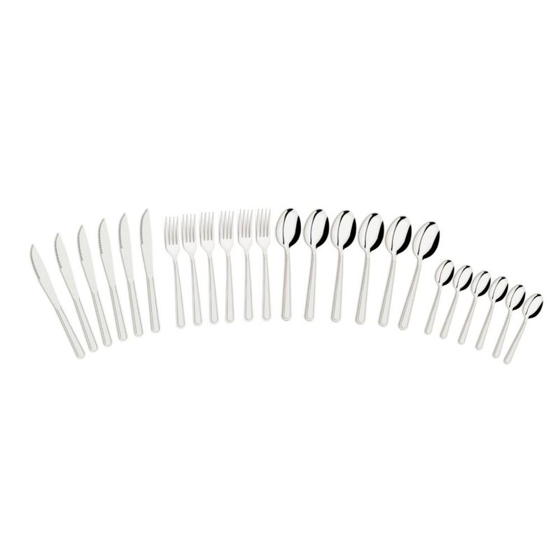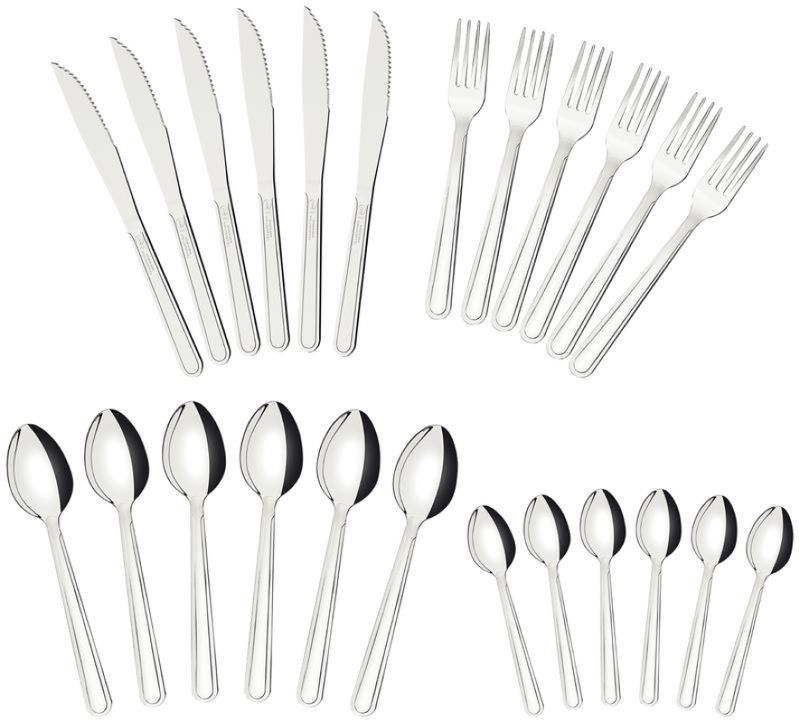 Faqueiro Tramontina Aço Inox Buzios 24 Peças Encante seus amigos e familiares com o Faqueiro Tramontina Búzios em Aço Inox com Detalhe 24 Peças! Produzido totalmente em aço inox, o faqueiro além de ser resistente e durável, deixa a composição da sua mesa ainda mais especial, pois as peças que compõem o jogo possuem um lindo acabamento, garantindo um charme a mais para a refeição. As peças ainda são fáceis de limpar e podem ser lavadas na máquina de lavar louças. A escolha perfeita para saborear as melhores receitas! Descrição do produtoOs talheres são produzidos em aço inox que mantém a beleza, a higiene e a durabilidadeAs lâminas das facas têm maior durabilidade do fio devido ao tratamento térmicoOs garfos e colheres garantem maior resistência devido a espessura do aço e a estampagem das lâminasPodem ir à máquina de lavar louças facilitando seu dia a diaPeso Líquido: 0,610 kgPeso Bruto: 0,770 kgDimensões Embalagem (Compr. X Larg. X Alt.): 40x 450x 207 mm.Conteúdo do faqueiro: 6 colheres de mesa, 6 colheres de chá, 6 facas para churrasco, 6 garfos de mesa Imagens meramente ilustrativas, todos os itens que ambientam o produto não estão inclusos.
