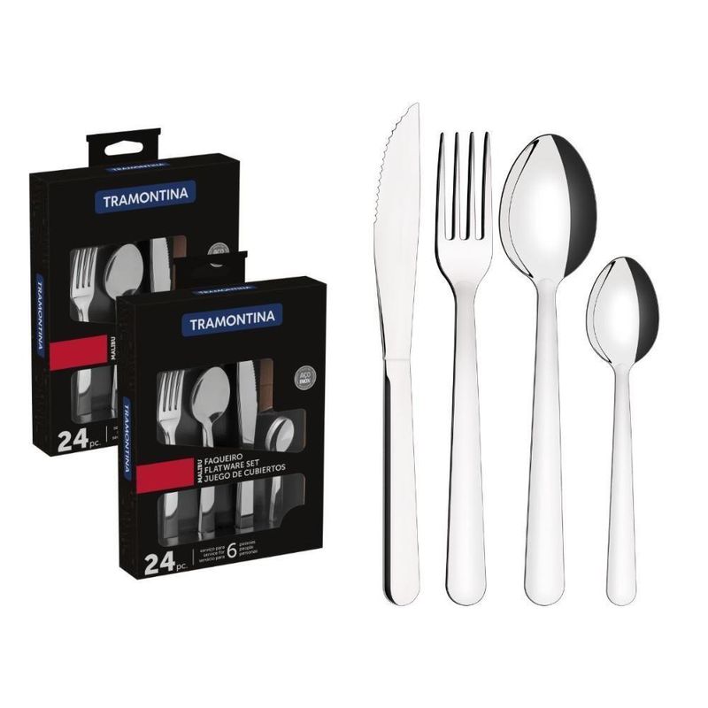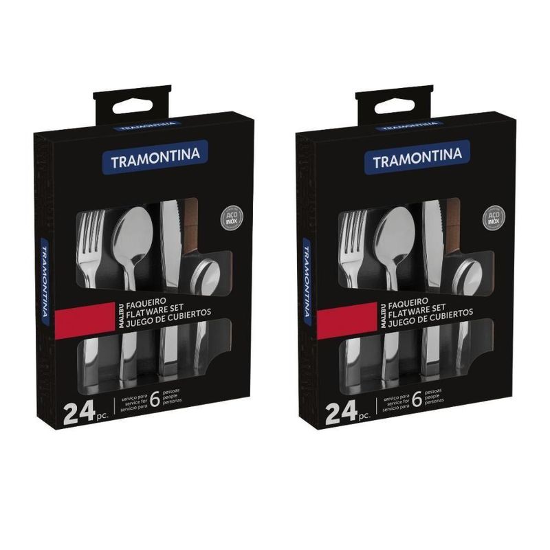 Faqueiro Tramontina Aço Inox Malibu 48 PeçasFaqueiro Aço Inox Malibu 48 Peças TramontinaImpressione seus convidados com o faqueiro Tramontina Malibu em aço inox 48 peças! Um faqueiro totalmente produzido em aço inox que oferece durabilidade e resistência, além de deixar sua mesa muito mais elegante e cheia de estilo, pois suas peças contam com um acabamento que tornam o talher ainda mais especial. Muito fáceis de limpar, os talheres ainda podem ir à máquina de lavar louças. A companhia ideal para as refeições do seu dia!Descrição do produto:Marca: TramontinaLinha: MalibuTalheres produzidos em aço inox que mantém a beleza, a higiene e a durabilidade.Lâminas das facas com maior durabilidade do fio devido ao tratamento térmico.Garfos e colheres que garantem maior resistência devido a espessura do aço e a estampagem das lâminas.Podem ir à máquina de lavar louças facilitando seu dia a dia.Conteúdo do Faqueiro: 12 colheres de mesa, 12 colheres de chá, 12 facas para churrasco, 12 garfos de mesa.Imagens meramente ilustrativas, todos os itens que ambientam o produto não estão inclusos.Cor principal: Cinza | Marca: Tramontina | Modelo detalhado: Malibu | Talheres incluídos: Garfo, Faca, Colher e Colher de Chá | Material do cabo: Aço Inox | É kit: Sim | Cor: Cinza | SKU: TRA23798046 | Unidades por kit: 48 | Material da lâmina: Aço Inox | Tipo de embalagem: Caixa | Fonte do produto: Tramontina | Linha: Malibu | Código universal de produto: 7891112274075 | Modelo: Malibu | MPN: 7891112274075 | Condição do item: Novo | Quantidade de peças: 48 Peças | É apto para lava-louças: Sim | Regulamentação Produto Perigoso: Não Aplicável