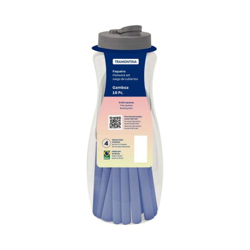 Faqueiro Tramontina Gamboa Inox Azul 16 Peças Tramontina - O faqueiro Tramontina Gamboa com lâminas em aço inox e cabos de polipropileno Azul 16 peças vai garantir uma mesa elegante e vai encantar todos os seus convidados. Desenvolvido com lâminas de aço inox e cabos de polipropileno, eles são resistentes, duráveis e confortáveis de manusear, proporcionando firmeza e segurança durante a utilização. Composto por 16 peças, este faqueiro é perfeito para atender suas necessidades diárias e também para receber convidados em grande estilo, podendo as peças podem ser levadas à lava-louças, facilitando a limpeza e otimizando seu tempo na cozinha. Sua mesa ficará ainda mais bonita e sofisticada com o faqueiro Tramontina Gamboa. Adquira agora e transforme suas refeições em momentos especiais! Características Gerais do Produto: Garantia: • 90 dias para vícios ou defeitos de fabricação