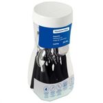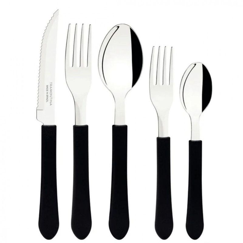 Faqueiro Tramontina Leme Com 20 Pecas PretoO faqueiro Tramontina Leme com laminas em aco inox e cabos de polipropileno com 20 pecas e a escolha certa para deixar suas refeicoes muito mais praticas e cheias de estilo!As pecas que compoem o jogo sao produzidas com laminas em aco inox e cabos de polipropileno que contam com resistencia e durabilidade para estarem presentes em todos os momentos do seu dia.Sua utilizacao e muito agradavel e voce garante um manuseio seguro, pois seus cabos tem formato anatomico e encaixam-se perfeitamente a sua mao. As pecas ainda sao faceis de limpar e podem ir a maquina de lavar loucas, facilitando seu dia a dia na cozinha!MODELO: LEMELaminas: aco inoxLaminas das facas: com maior durabilidade do fio devido ao tratamento termicoGarfos e colheres: que garantem maior resistencia devido a espessura do aco e a estampagem das laminasCabos de polipropileno: com maior resistencia e durabilidadePodem ir a maquina de lavar loucas: facilitando seu dia a diaDimensoes do produtoAltura: 24 cmLargura: 9 cmProfundidade: 9 cmPeso: 360 grGarantia: 3 meses