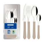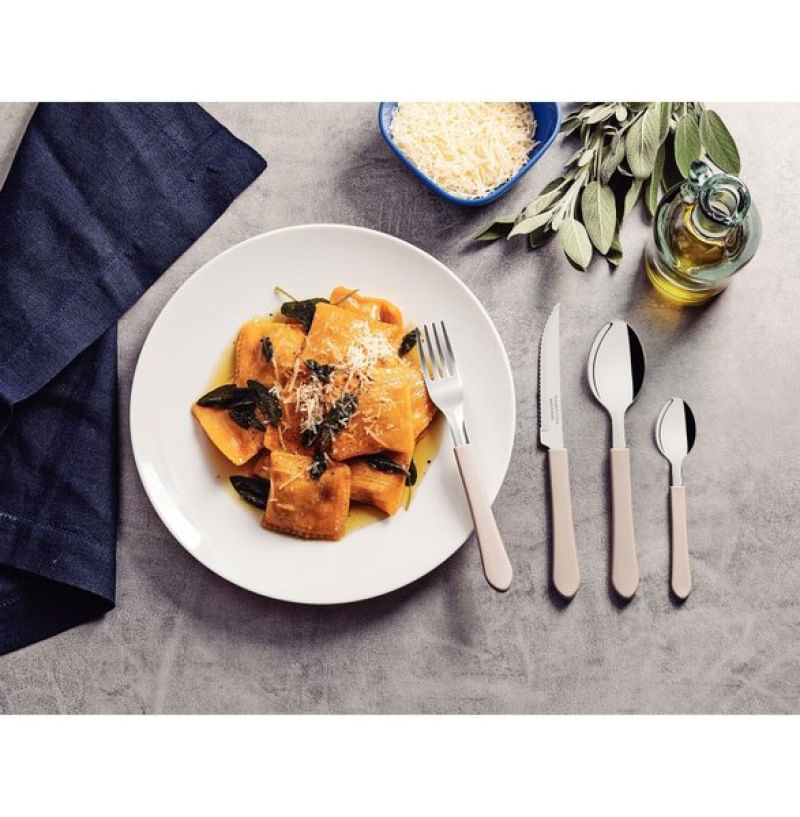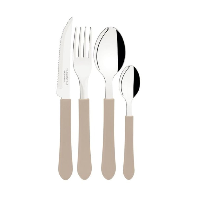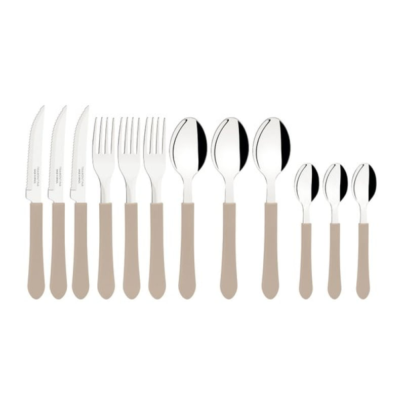 Faqueiro Tramontina Leme Inox Cabos Cinza 12 Peças Tramontina - Para compor uma mesa cheia de estilo e personalidade, o faqueiro Tramontina Leme com lâminas em aço inox e cabos de polipropileno cinza 12 peças é a escolha perfeita. Com ele, você tem peças perfeitas para uso diário, produzidas com lâminas em aço inox e cabos de polipropileno. Suas facas contam com alto poder de corte devido ao tratamento térmico e seus garfos e colheres garantem alta resistência, pois possuem espessura e estampagem especial. Suas peças garantem excelente durabilidade, facilidade na limpeza e maior praticidade, pois ainda podem ir à máquina de lavar louças. Um faqueiro com uma cor especial, indispensável para quem busca elegância na hora de compor a mesa! Características Gerais do Produto: Garantia: • 90 dias para vícios ou defeitos de fabricação.