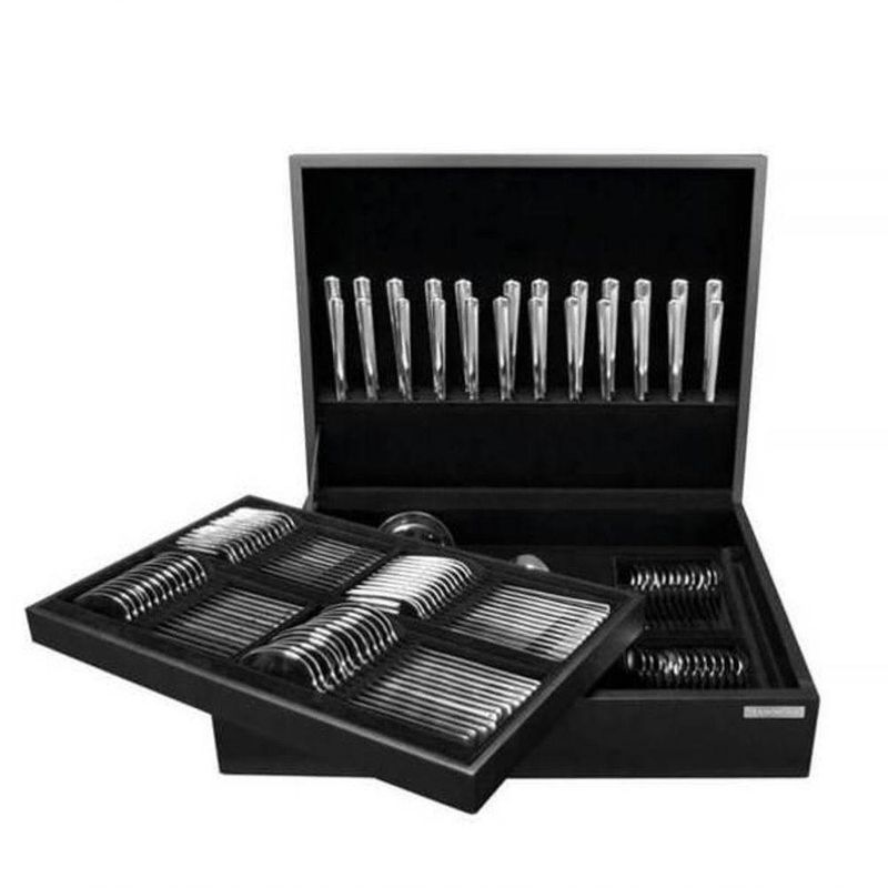 Faqueiro Tramontina Mônaco Em Inox Com Facas De Mesa Forjadas 101 PeçasCom o Faqueiro Tramontina em Aço Inox com Facas de Mesa Forjadas 6 mm, Acabamento Alto Brilho e Estojo de Madeira com Compartimento Retrátil 101 Peças da linha Mônaco, sua mesa ganha um toque de sofisticação e beleza para qualquer ocasião. As peças são produzidas em aço inox de alta qualidade, com acabamento em alto brilho que valoriza ainda mais a composição. As colheres têm bojo simétrico e bordas arredondadas, os garfos contam com dentes polidos na parte interna e formato ideal para maior conforto, e as facas são totalmente temperadas, garantindo durabilidade no fio de corte e resistência à corrosão, sem riscar as porcelanas. O conjunto oferece um completo de mesa e sobremesa, ideal para quem valoriza funcionalidade e estilo. Para complementar, o faqueiro acompanha um elegante estojo de madeira MDF com compartimento retrátil, que facilita o armazenamento e pode compor a decoração com charme e requinte.Recomendações de Uso:Antes do Uso: Remova as eventuais etiquetas e lave-o com água quente e detergente.Modo de Uso: Durante a lavagem use somente esponja macia, outros tipos de produtos, como palha de aço, poderão riscar ou prejudicar o brilho dos talheres. Enxágue bem cada peça a fim de remover totalmente os resíduos dos produtos de limpeza, que por serem abrasivos, podem danificar o inox. Após a lavagem enxugue os talheres, as substâncias químicas contidas na água poderão causar manchas. Sempre que possível use água quente, pois renova o brilho dos talheres. Evite o das peças com superfícies quentes, pois podem provocar a descoloração do produto. Quando usar a máquina de lavar louça, recomendamos retirar os talheres logo que tenha terminado o ciclo enxaguar.- Foto meramente ilustrativa.Informações Adicionais:- Acabamento em alto brilho;- Com estojo de madeira MDF;- completo para mesa e sobremesa;- Podem ser lavadas diariamente na máquina de lavar louças;- As facas são forjadas, ou seja, são monobloco, obtidas de uma única peça, sem emendas;- Facas totalmente temperadas, que garantem maior durabilidade no fio de corte e maior resistência à corrosão, não riscam as porcelanas.