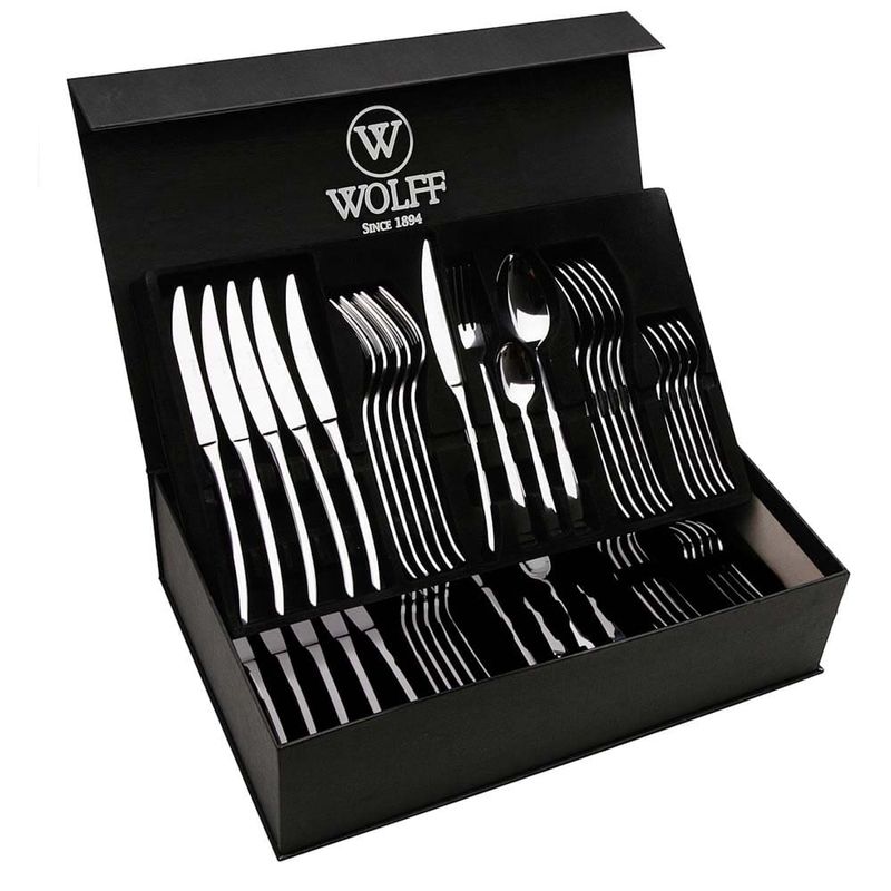 O Faqueiro Wolff Berna são ideais para servir suas refeições com um toque especial e elegante. Ele conta com 48 peças feitas em aço inoxidável resistente, duradouro e higiênico. Serve até seis pessoas e conta com um design requintado com cantos lisos e acabamento em alto brilho que tornam a ocasião ainda mais requintada.