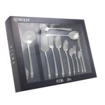 Faqueiro Wolff Viena 54 Peças de Aço InoxO Faqueiro 54 Peças de Aço Inox com Caixa Litografada Viena da Wolff é a combinação perfeita de elegância e praticidade para suas refeições diárias e ocasiões especiais.CaracterísticasQualidade SuperiorFabricado com aço inox de alta qualidade, o faqueiro oferece durabilidade, resistência e brilho duradouro, mesmo após várias lavagens.Conjunto CompletoComposto por 54 peças, o faqueiro inclui facas de mesa, garfos de mesa, colheres de mesa, colheres de chá, garfos de sobremesa, colheres de sobremesa e utensílios adicionais, atendendo a todas as necessidades à mesa.Design EleganteO design clássico e elegante do faqueiro Viena adiciona um toque de sofisticação à sua mesa, complementando qualquer estilo de decoração.Caixa LitografadaAcompanhado de uma caixa litografada, o faqueiro Viena não apenas organiza os talheres de forma prática, mas também serve como uma bela peça decorativa em sua cozinha ou sala de jantar.PraticidadeAlém de ser ideal para uso doméstico, o faqueiro Wolff é perfeito para presentear em casamentos, inaugurações de casa nova e outras ocasiões especiais.Adorne sua mesa com o Faqueiro 54 Peças de Aço Inox com Caixa Litografada Viena da Wolff e desfrute de momentos memoráveis com amigos e familiares em torno de uma mesa bem-aparelhada.Wolff. A excelência em receber, servir e decorar!Contém: 8 Facas para Mesa8 Colheres para Mesa8 Garfos para Mesa 8 Colheres para Sobremesa8 Garfos para Sobremesa8 Colheres chá/café1 Concha1 Colher para Servir1 Colher para Salada1 Garfo para Salada1 Colher de Açucar1 Espátula para BoloLava Louça: NãoMicroondas: NãoForno: NãoFogão: NãoFreezer: NãoMedidas Produto: Altura 8,00cm x Largura 33,50cm x Comprimento 44,00cmPeso: 2,74KgCor: InoxMaterial: Aço InoxLavar com detergente neutro, esponja macia e secar imediatamente.