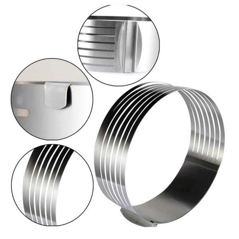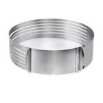 - Destaques: • Com o Fatiador de Bolos Prana Aço Inox Expansível, você consegue preparar bolos recheados com muito mais facilidade!• Coloque o aro de inox sobre o bolo. Para fazer o corte, passe uma faca de lâmina comprida pelas areas vazadas.• Você pode cortar até 8 camadas uniformes. • O fatiador é expansível, para se adaptar a tamanhos diferentes de bolos. - Especificações: • Peso Total (Produto + Embalagem): 350.00(gr)• Altura: 8.00(cm)• Largura: 24.00(cm)• Profundidade: Expansível entre 24 (cm) e 30 (cm).• Material: Aço Inox