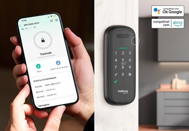 A fechadura Intelbras MFR 2040 é uma solução moderna e segura de controle de acesso, que permite destravamento por leitura da palma da mão (veias), sem necessidade de contato físico. Suporta cadastramento de até 50 palmas da mão, 50 tags e até 100 senhas (com o app Mibo, inclusive temporárias). Opera em portas de 25 a 70 mm de espessura, com trava automática, alimentação por bateria recarregável (duas células 18650 3,7 V recarregáveis) e opção de contingência via bateria alcalina 9 V. É compatível com automações via app, oferece função “não perturbe” para controle interno e possui resistência projetada para durar em uso intensivo. Especificações Técnicas:Tensão de alimentação: 2 baterias de lítio padrão 18650 (3,7 V, 3350 mAh)Contingência: bateria alcalina 9 V (tipo 6LR61)Entrada do carregador: 100–240 V AC, saída 5 V DC 1,5 A, consumo Temperatura de operação: de -10 °C a +65 °CTipo de identificação: leitura da palma da mão, senha, tag MIFARECapacidade de palmas cadastradas: até 50Capacidade de tags: até 50Capacidade de usuários/senhas: até 100 usuários com app Mibo, até 10 usuários temporários e 1 administradorVelocidade de reconhecimento: ~0,1 segundoTrava automática: ativa automaticamente após fecharEspessura de porta compatível: de 25 a 70 mmResistência ao impacto: até 300 kgf para portas pivotantes / 150 kgf para portas de correrMateriais: aço, alumínio, zinco, ABS+PC e vidroDimensões unidade externa: 72 × 170 × 19,5 mmDimensões unidade interna: 75 × 204 × 48,7 mmGarantia: 3 anos na Intelbras
