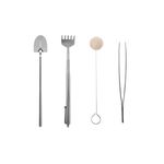Jogo de mini ferramentas para jardinagem peças produzidas em aço inoxidavel. As ferramentas pequenas sao perfeitas para jardinagem de casa ou apartamento e manejo de plantas de pequeno porte, como cactos, bonsai e suculentas. Cada peça possui funçao propria, sendo o ancinho, ajustavel ate 50cm, e perfeito para nivelar e mover substrato em espacos dificeis de alcancar. A pinça facilita a remoçao de detritos e o ajuste de plantas em cantos estreitos, garantindo um manuseio preciso. A pa excelente para compactar o solo e adicionar camadas de musgo e areia. Ja o espanador e ideal para limpar poeira e sujeira em folhas frageis ou no vidro do terrario. Contem: 1 Pinça Medidas: 18 x 1,5 cm 1 Pá Medidas: 17,5 x 2,5 cm 1 Espanador Medidas: 16 x 2 cm 1 Ancinho Medidas: 16 x 3 cm Material: Aço Inox