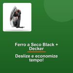 Ferro A Seco Black + Decker Vfa1110tm2 220VDescubra a eficiência e praticidade do Ferro a Seco Black + Decker Vfa1110tm2 220V. Com um design compacto, suas dimensões de 12 cm de largura, 12 cm de altura e 24 cm de comprimento garantem fácil manuseio e armazenamento. Pesando apenas 0,78 kg, é leve e ideal para uso diário. Este ferro oferece um deslizamento suave, proporcionando roupas impecáveis em menos tempo. A tecnologia avançada da Black + Decker assegura durabilidade e desempenho superior, tornando-o um aliado indispensável para quem busca qualidade e eficiência na hora de passar roupas.Descubra a eficiência e praticidade do Ferro a Seco Black + Decker Vfa1110tm2 220V. Com um design compacto, suas dimensões de 12 cm de largura, 12 cm de altura e 24 cm de comprimento garantem fácil manuseio e armazenamento. Pesando apenas 0,78 kg, é leve e ideal para uso diário. Este ferro oferece um deslizamento suave, proporcionando roupas impecáveis em menos tempo. A tecnologia avançada da Black + Decker assegura durabilidade e desempenho superior, tornando-o um aliado indispensável para quem busca qualidade e eficiência na hora de passar roupas.