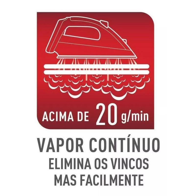 Seja bem-vindo(a) a Loja NIVALMIX, O novo Ferro a Vapor Elétrico Steamgliss Base Antiaderente da Arno possui uma sola ampla 25% maior** com base antiaderente que não gruda nas roupas e desliza com muito mais facilidade. Sua ponta de precisão é perfeita para desamassar até as zonas de mais difícil acesso das suas roupas como entre os botões, no colarinho e nos punhos. Conheça o novo Ferro a Vapor Elétrico Arno Steamgliss com Base Antiaderente. Sua sola MAIOR e MAIS RÁPIDA ajuda a alcançar resultados excelentes com suas roupas de forma prática e com muito menos esforço. • Sola 25% maior**: com sua base ampla você conseguirá passar suas roupas com muito mais rapidez e obter resultado mais precisos em todos os tipos de roupas e tecidos. • Ponta de precisão: adaptada de forma perfeita para desamassar até as zonas de mais difícil acesso das suas roupas como entre os botões, no colarinho e nos punhos. • 2X Mais Vapor***: para deixar suas roupas ainda mais perfeitas, o novo ferro de passar Arno possui vapor contínuo de 20gr/min e extra de até 100gr/min que oferecem até 2X mais vapor ajudando a amolecer as tramas da roupa e tornando o processo de passar roupas muito mais simples e eficiente. • Base antiaderente: não gruda nas roupas possibilitando um deslizar mais fácil e prático. • 1200W de potência: com 5 configurações de temperatura para uma performance sem igual. O ferro a vapor Arno Steamgliss com Base antiaderente ainda conta com a função Spray com tanque de água com grande capacidade (230 ml) para que você possa passar uma grande quantidade de roupa sem a necessidade de parar com frequência e alça ergonômica que torna o ato de passar mais natural - tudo pensado para a sua comodidade! Você imagina, clic, a Arno faz. CARACTERÍSTICAS: • Fabricante: Arno • Modelo: FV1920B3 • Voltagem: 127V (não é bivolt) • Consumo de energia (kW/h): 1,2kWh • Comprimento do fio: 1,80 m • Temperatura (Min e Max): 85° a 205° • Spray: Sim • Vapor vertical: Não • Reservatório de água visível: Sim • Base Antiaderente: Sim • Capacidade do reservatório: 230 ml • Porta fio: Não • Peso: 950 gr • Dimensões: 27 x 12 x 13 cm (CxLxA) • Seletor de temperatura: Sim • Cor: Verde e Branco Itens inclusos: • 01 Ferro a Vapor Arno Steamgliss e manual de instruções Produto Certificado – Compulsório Registro Inmetro: INNAC 001 698/2021 OCP 0098 As cores podem variar entre as imagens mostradas acima e o produto. Imagens meramente ilustrativas.